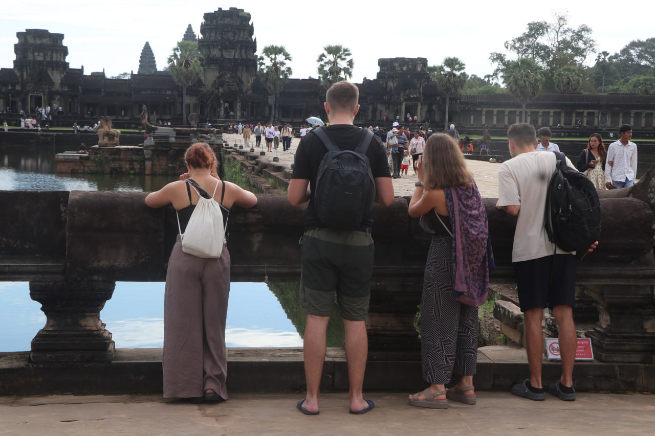 ការទស្សនាប្រាសាទអង្គរវត្ត ដើរចូលពីទិសខាងលិច ទេសចរគ្រប់រូបនឹងឃើញទិដ្ឋភាពដ៏ស្គឹមស្កៃ និងគោរពលើកតម្លៃប្រាសាទ