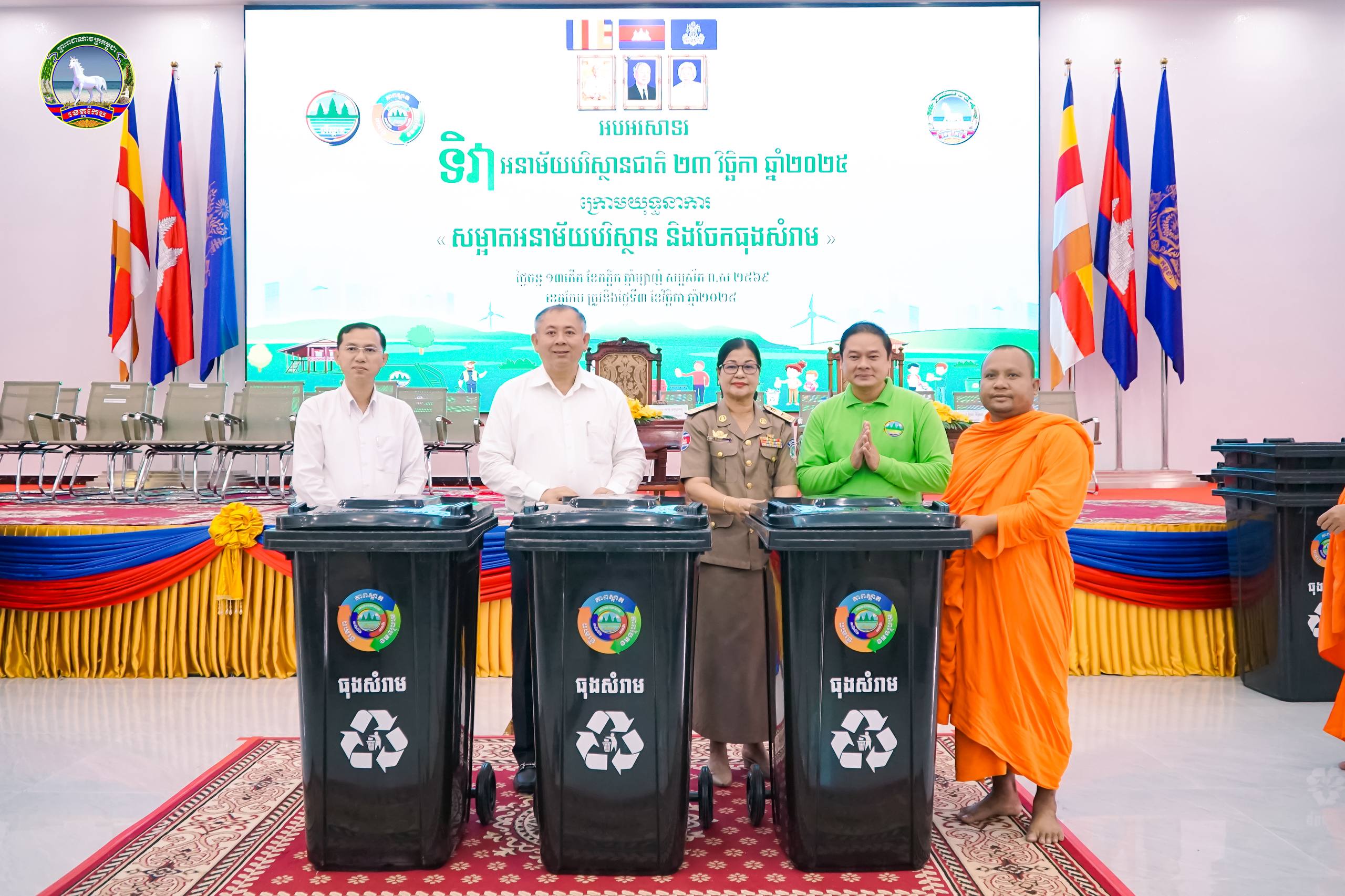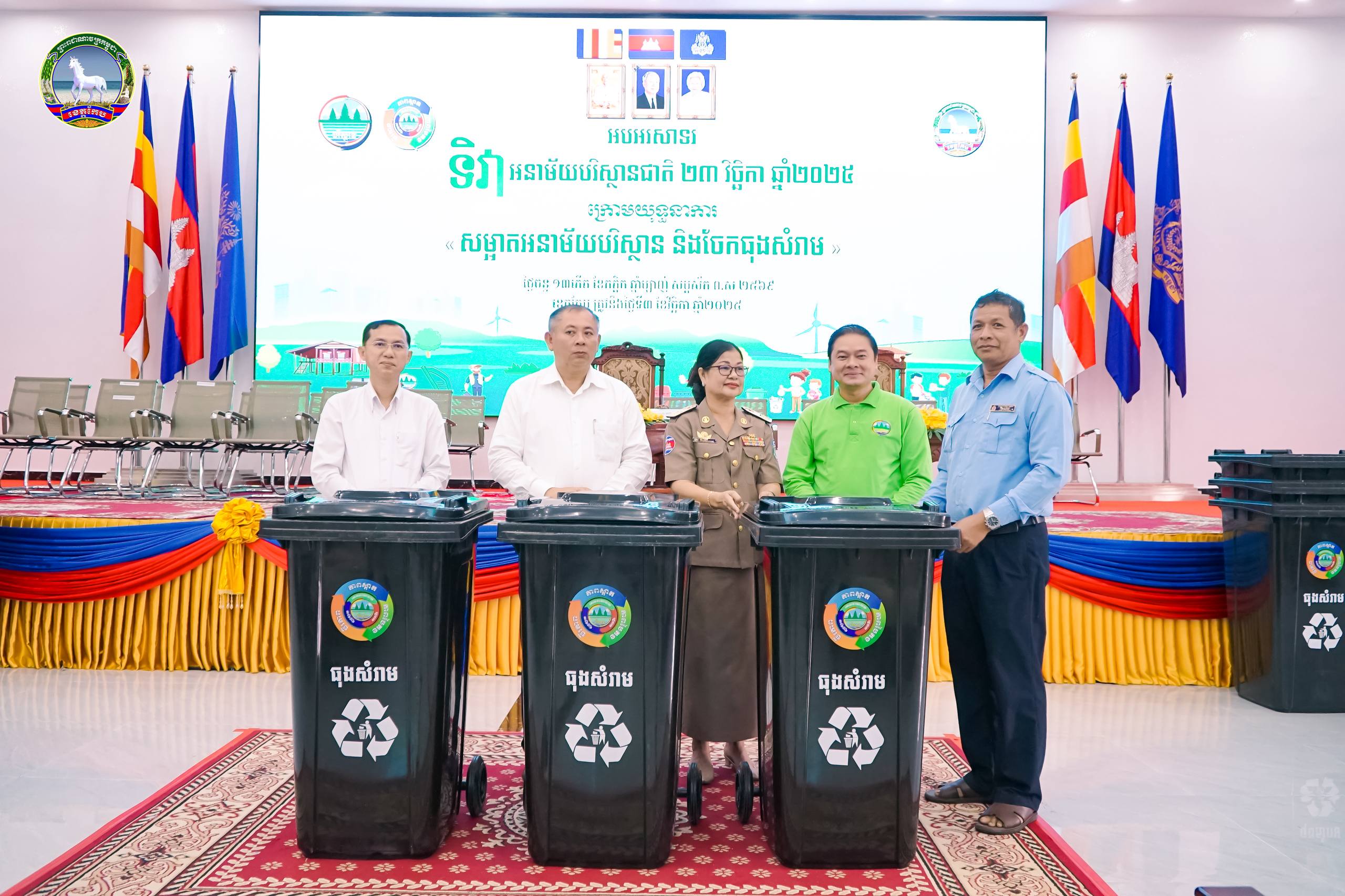 ក្នុងឱកាសនោះ រដ្ឋបាលខេត្តកែប បានថ្លែងអំណរគុណដល់ ឯកឧត្តមបណ្ឌិត អ៊ាង សុផល្លែត រដ្ឋមន្រ្តីក្រសួងបរិស្ថាន និងថ្នាក់ដឹកនាំក្រសួងបរិស្ថាន ដែលបានប្រគល់សម្ភារគ្រប់គ្រងសំរាម សំណល់រឹង រួមមានធុងសំរាមក្នុងឱកាសទិវាអនាម័យបរិស្ថានជាតិ ២៣វិច្ឆិកា នាឆ្នាំនេះ ជូនដល់សាលារៀន វត្តអារាម មន្ទីរពេទ្យ មណ្ឌលសុខភាព ព្រមទាំងសាលាឃុំ-សង្កាត់ទូទាំងខេត្តកែប ដើម្បីបង្កើនភាពស្អាត និងអនាម័យ កាន់តែទាក់ទាញទេសចរណ៍មកទស្សនាខេត្តកែប ព្រមទាំងការរស់នៅស្អាត ភូមិឋានស្អាត សុខភាពល្អរបស់ប្រជាពលរដ្ឋនៅតាមមូលដ្ឋាន ដែលជាផ្នែកមួយនៃការផ្លាស់ប្ដូរទម្លាប់ និងការយល់ដឹងរបស់ប្រជាពលរដ្ឋអំពី ភាពស្អាត សុខភាព និងការរស់នៅប្រកបដោយអនាម័យ ការរក្សាទីក្រុង ឬ ភូមិឋានឱ្យស្អាត គឺជាការរួមចំណែករបស់មនុស្សគ្រប់រូប។