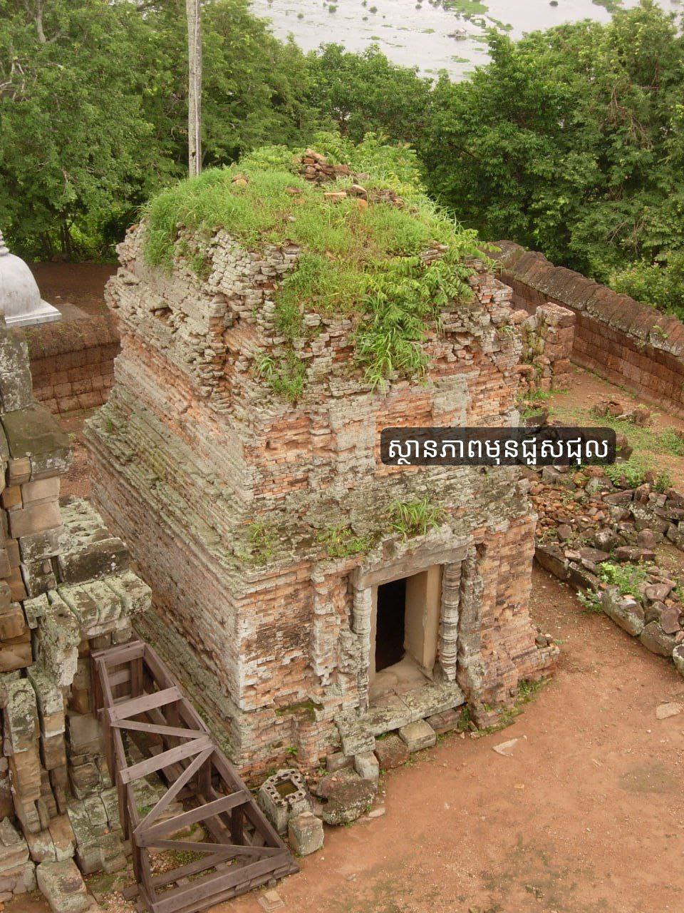 មួយទៀត គឺតួខឿនប្រាសាទ មានការទ្រុឌទ្រោមខ្លាំងផងដែរ ដែលទាមទារឱ្យមានការជួសជុលជាបន្ទាន់។ ចំពោះបច្ចេកទេសជួសជុលប្រាសាទនេះ ក្រុមការងារបានសម្អាតកម្ទេចដី ឬសស្មៅ ដើមរុក្ខជាតិ និងព្យាយាមរកឥដ្ឋចាស់ៗដែលជ្រុះរាយប៉ាយនៅខាងក្រោម ឬនៅជុំវិញ ដោយពង្រឹងខឿន ដំបូល និងតួប្រាសាទឱ្យមានភាពរឹងមាំឡើងវិញ។