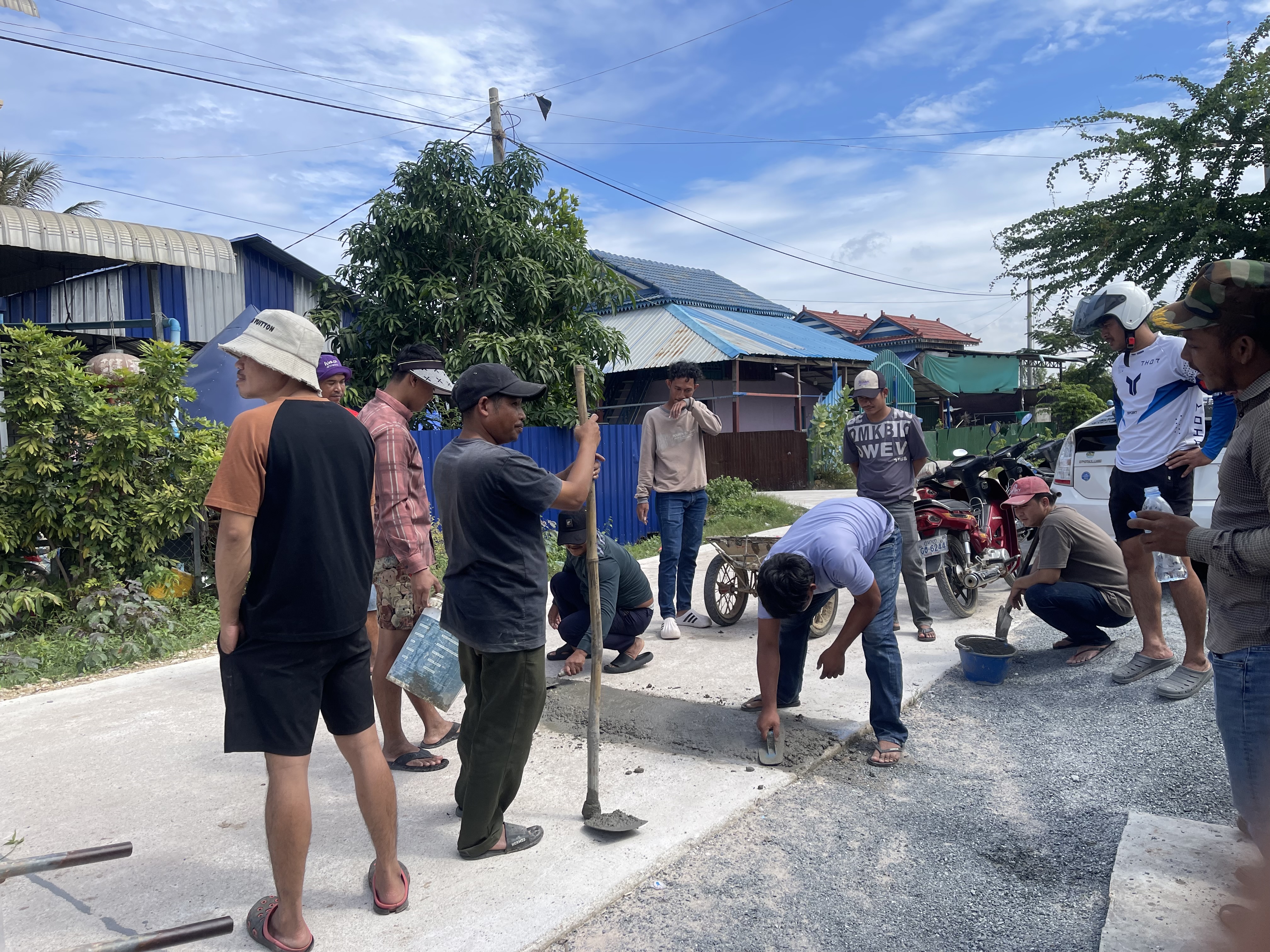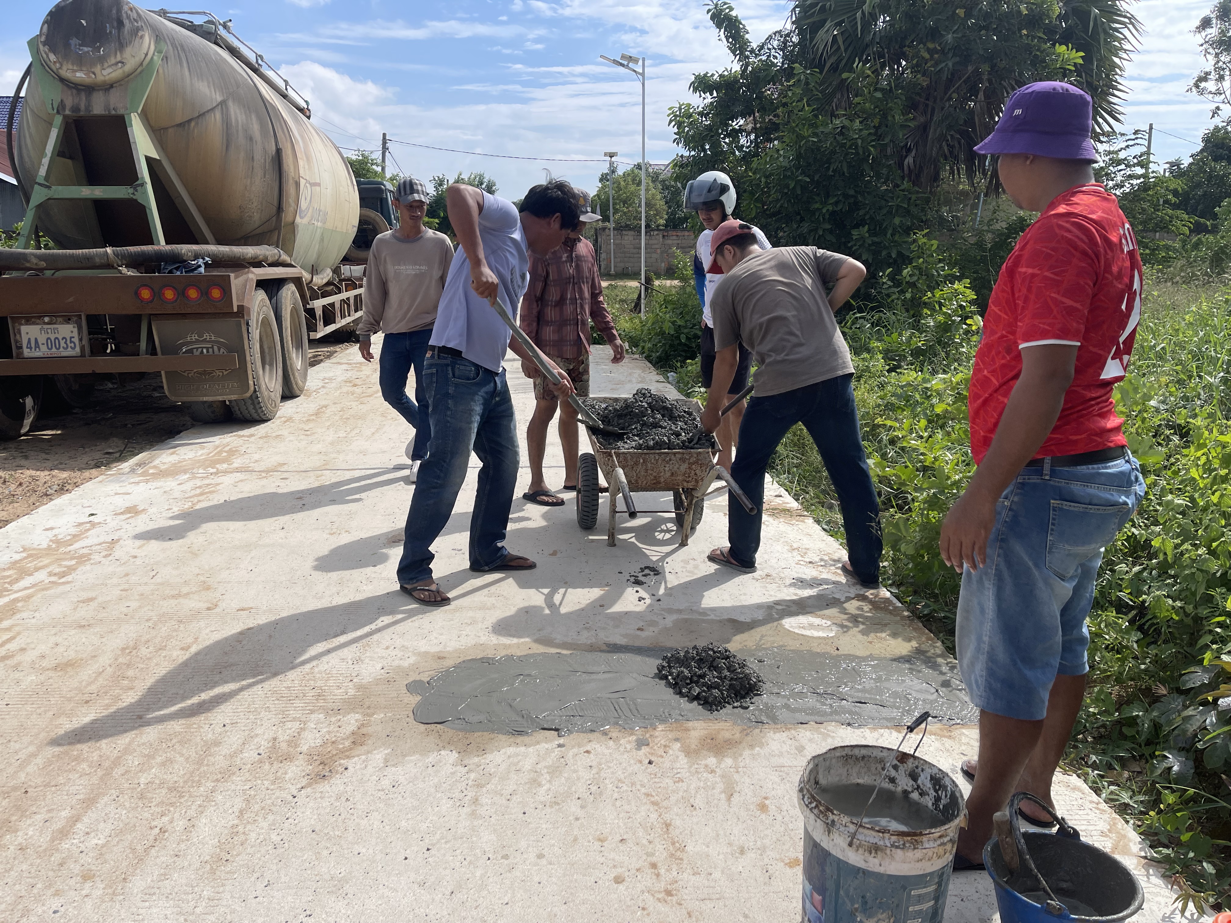 ពលរដ្ឋនៅភូមិផ្សារគុម្ពឬស្សីខេត្ដតាកែវ សាមគ្គីគ្នាធ្វើទួលបន្ថយល្បឿនលើផ្លូវបេតុងថ្មី