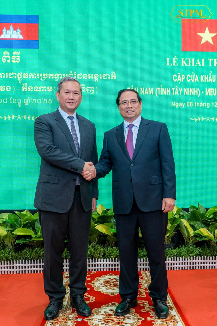 ការជំរុញទំនាក់ទំនង និងកិច្ចសហប្រតិបត្តិការទ្វេភាគីនេះធ្វើឡើងក្នុងជំនួបរវាងសម្តេចមហាបវរធិបតី ហ៊ុន ម៉ាណែត នាយករដ្ឋមន្ត្រី នៃព្រះរាជាណាចក្រកម្ពុជា និងលោក ផាម មិញជិញ (PHAM Minh Chinh) នាយករដ្ឋមន្រ្តី នៃសាធារណរដ្ឋសង្គមនិយមវៀតណាម បានជួបពិភាក្សាការងារទ្វេភាគី ក្នុងឱកាសនៃការអញ្ជើញជាអធិបតីក្នុងពិធីសម្ពោធដាក់ឱ្យដំណើរការជាផ្លូវការច្រកទ្វារព្រំដែនអន្តរជាតិ ម៉ឺនជ័យ(ខេត្តព្រៃវែងរបស់កម្ពុជា)-តឹនណាម(ខេត្តតៃនិញរបស់វៀតណាម) នាព្រឹកថ្ងៃទី៨ ខែធ្នូ ឆ្នាំ២០២៥។ លោកបានអបអរសាទរ និងវាយតម្លៃខ្ពស់ចំពោះការសម្ពោធដាក់ឱ្យដំណើរការជាផ្លូវការច្រកទ្វារព្រំដែន ម៉ឺនជ័យ-តឹនណាម ដែលជាសមិទ្ធផលថ្មីឆ្លុះបញ្ចាំងពីភាពរីកចម្រើននៃទំនាក់ទំនង និងកិច្ចសហប្រតិបត្តិការទ្វេភាគី។