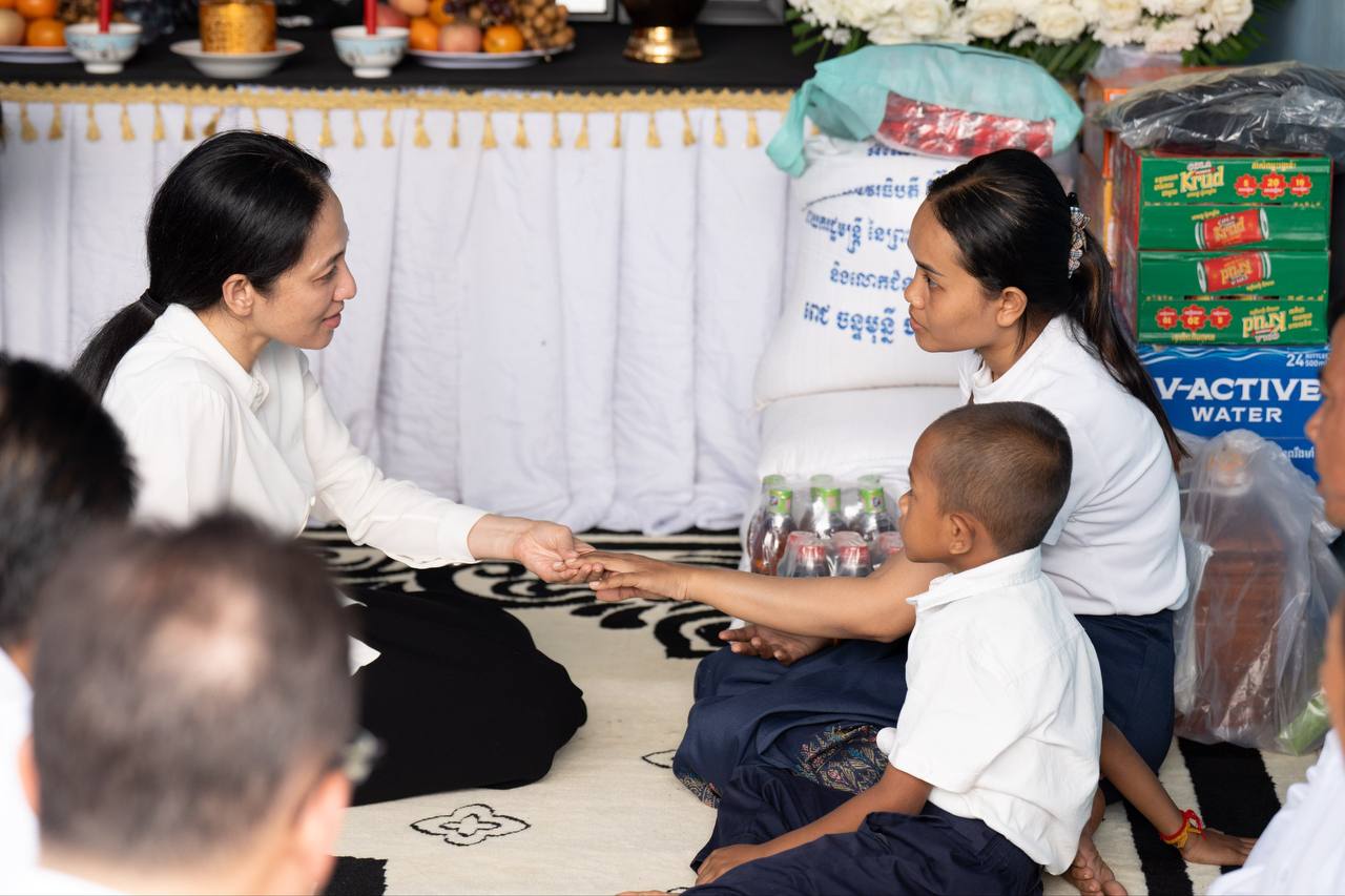 ទន្ទឹមនឹងនេះ លោកជំទាវបណ្ឌិត ក៏បាននាំយកមកជាមួយនូវអំណោយដ៏ថ្លៃថ្លារបស់ សម្តេចធិបតី និងលោកជំទាវបណ្ឌិត ជូនដល់ក្រុមគ្រួសារនៃសព ដើម្បីជួយសម្រួលដល់ការរស់នៅប្រចាំថ្ងៃ ។ រាជរដ្ឋាភិបាល រួមទាំងប្រជាជនកម្ពុជាទាំងអស់សូមចងចាំនូវវីរភាពដ៏អង់អាចក្លាហានរបស់ វីរកងទ័ព វីរនគរបាលជាតិ ដែលបានពលីអាយុជីវិតដើម្បីការពារបូរណភាពទឹកដី ក៏ដូចជាការផ្តល់ជូនមកវិញនូវសន្តិភាពជូនជាតិ មាតុភូមិ ។