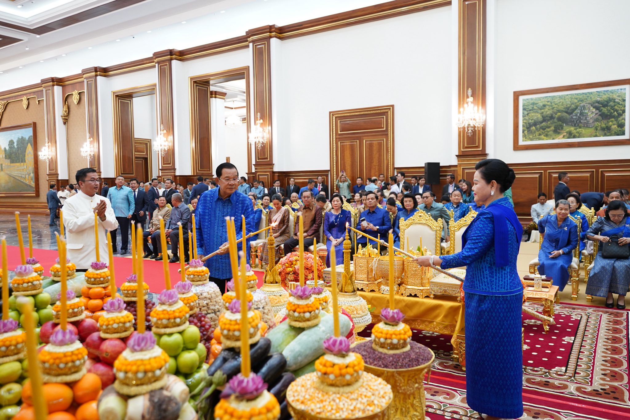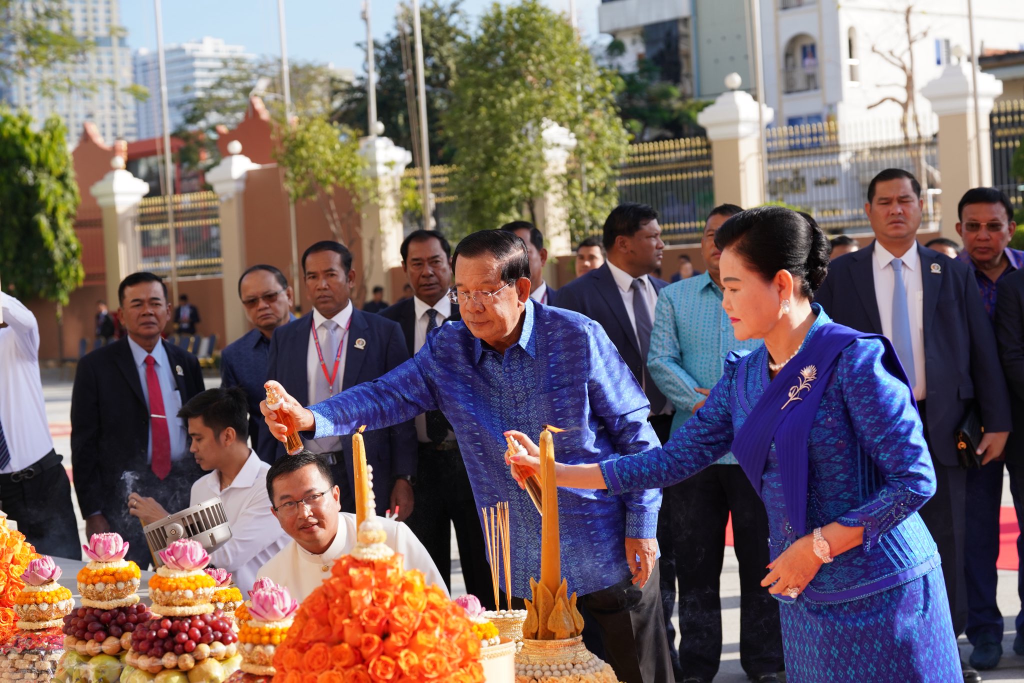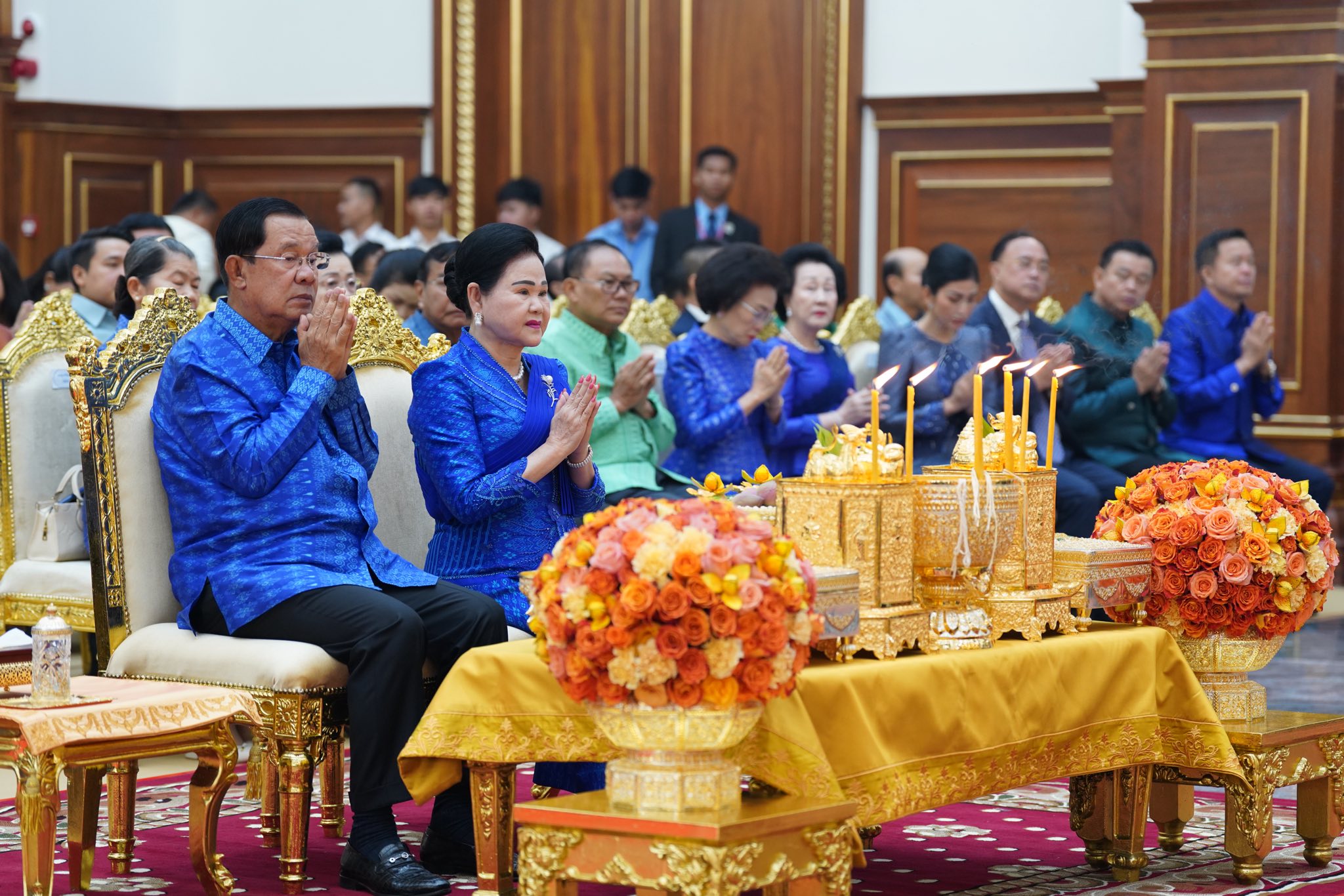 សម្តេចតេជោ និងសម្តេចកិត្តិព្រឹទ្ធបណ្ឌិតអញ្ជើញសូត្រមន្តក្រុងពាលីចម្រើនព្រះបរិត្តសុំសេចក្តីសុខសេចក្តីចម្រើនឡើងអគារថ្មីព្រឹទ្ធសភា