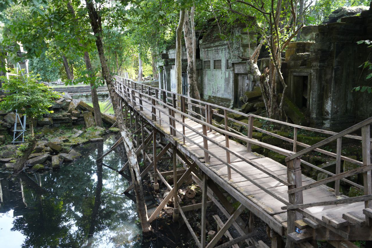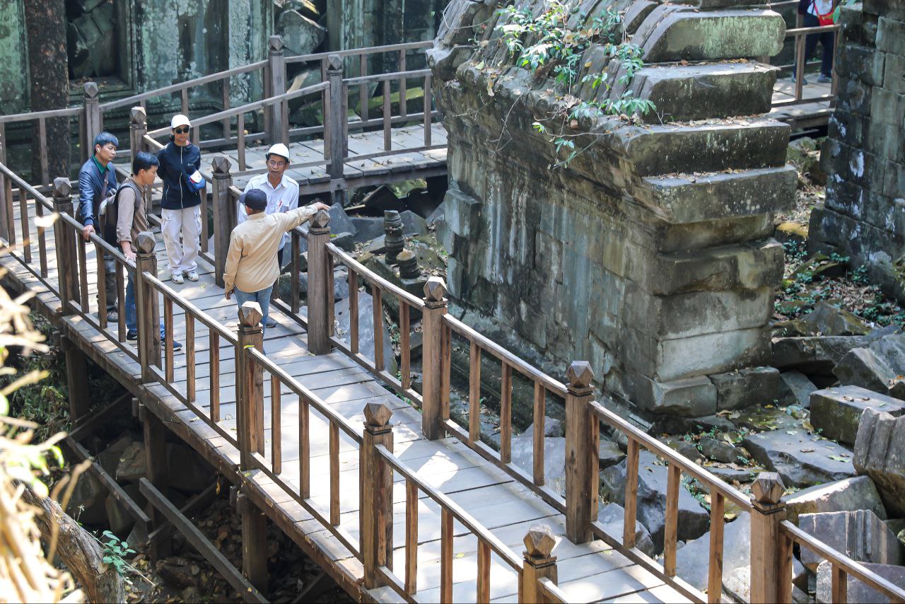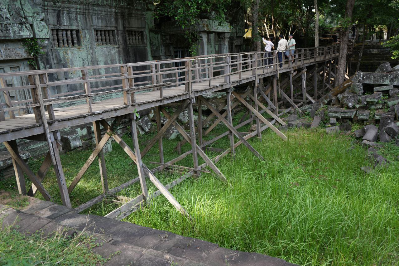 អាជ្ញាធរជាតិអប្សរា កំពុងជួសជុលស្ពានឈើថ្មើរជើងនៅប្រាសាទបេងមាលា