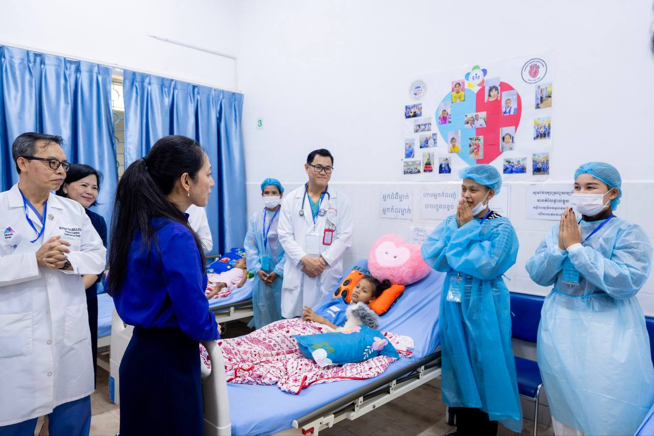 ភ្នំពេញៈ នាព្រឹកថ្ងៃទី១២ ខែកុម្ភៈ ឆ្នាំ២០២៦ លោកជំទាវបណ្ឌិត ពេជ ចន្ទមុន្នី ហ៊ុនម៉ាណែត បានអញ្ជើញមកមន្ទីរពេទ្យកុមារជាតិដើម្បីពិនិត្យវឌ្ឍនភាពគម្រោងវះកាត់បេះដូងកុមារ ដែលជាកិច្ចសហប្រតិបត្តិការរវាងមន្ទីរពេទ្យកុមារជាតិ និងសមាគមសុខាភិបាលខ្មែរនៅអាមេរិក (CHPAA) ។ គម្រោងដ៏វិសេសវិសាលនេះ ត្រូវបានបង្កើតឡើង និងអនុវត្តក្នុងគោលបំណងជួយព្យាបាលដល់កុមារទាំងឡាយដែលមានជំងឺបេះដូងពីកំណើត រួមទាំងជំងឺបេះដូងផ្សេងៗ តាមរយៈព្យាបាលវះកាត់ដោយមិនគិតថ្លៃ ដើម្បីផ្តល់មកវិញនូវសុខុមាលភាព និងជិវិតដ៏ត្រចះត្រចង់ ដល់កុមារកម្ពុជា។ គម្រោងនេះ ក៏ជួយបណ្តុះបណ្តាលបន្ថែមតាមរយៈការផ្លាស់ប្តូរបទពិសោធន៍គ្នាទៅវិញទៅមករវាងវេជ្ជបណ្ឌិតកម្ពុជា និងវេជ្ជបណ្ឌិតអាមេរិក ការជួយទ្រទ្រង់ផ្នែកឧបករណ៍បច្ចេកទេសវះកាត់ និងការជួយគាំទ្រផ្នែកស្មារតីគ្នាជាដើម។