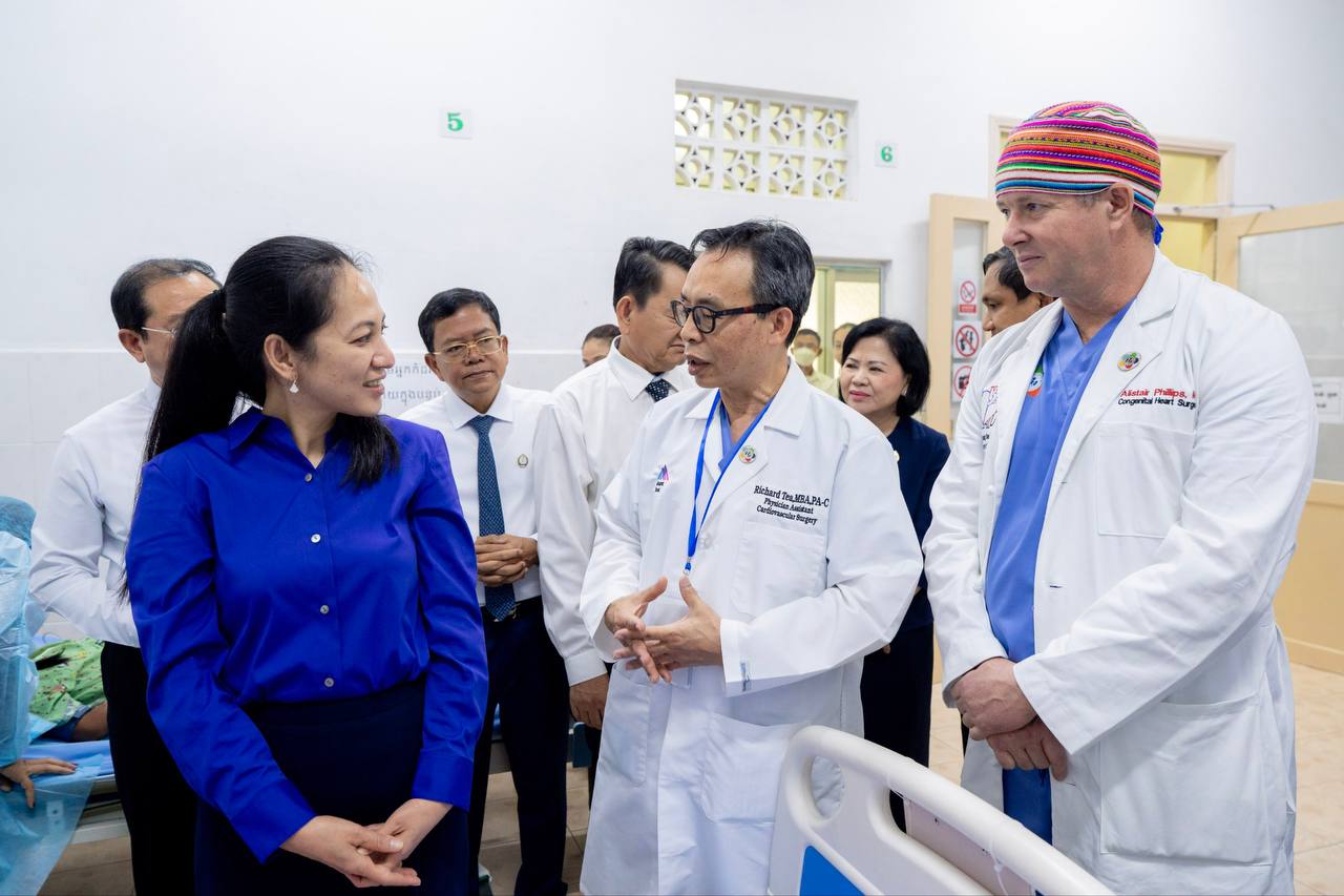 លោកជំទាវបណ្ឌិត ថែមទាំងបានជួបសំណេះសំណាលជាមួយក្រុមគ្រូពេទ្យ គិលានុបដ្ឋាក បុគ្គលិកមន្ទីរពេទ្យ រួមទាំងក្រុមគ្រូពេទ្យស្ម័គ្រចិត្តរបស់សមាគមសុខាភិបាលខ្មែរនៅអាមេរិក (CHPAA) ដែលកំពុងបម្រើការក្នុងគម្រោងនេះ។ លោកជំទាវបណ្ឌិត សូមអរគុណចំពោះកិច្ចសហប្រតិបត្តិការប្រកបដោយគុណភាព និងក្តីស្រឡាញ់ដល់កុមារកម្ពុជា និងសូមជូនពរឱ្យ គម្រោងវះកាត់បេះដូងកុមារ ដំណើរការដោយរលូន និងជោគជ័យ៕