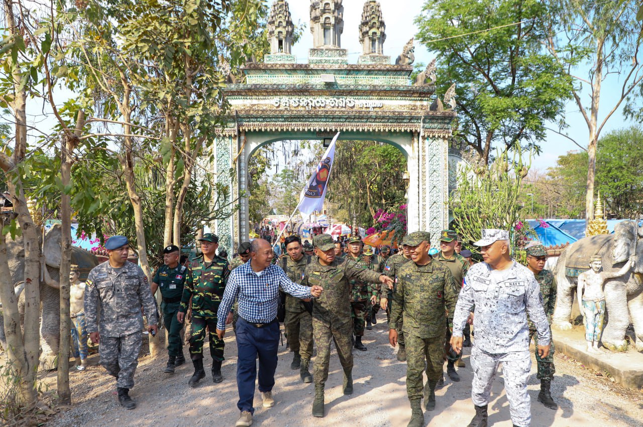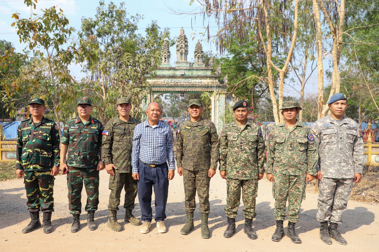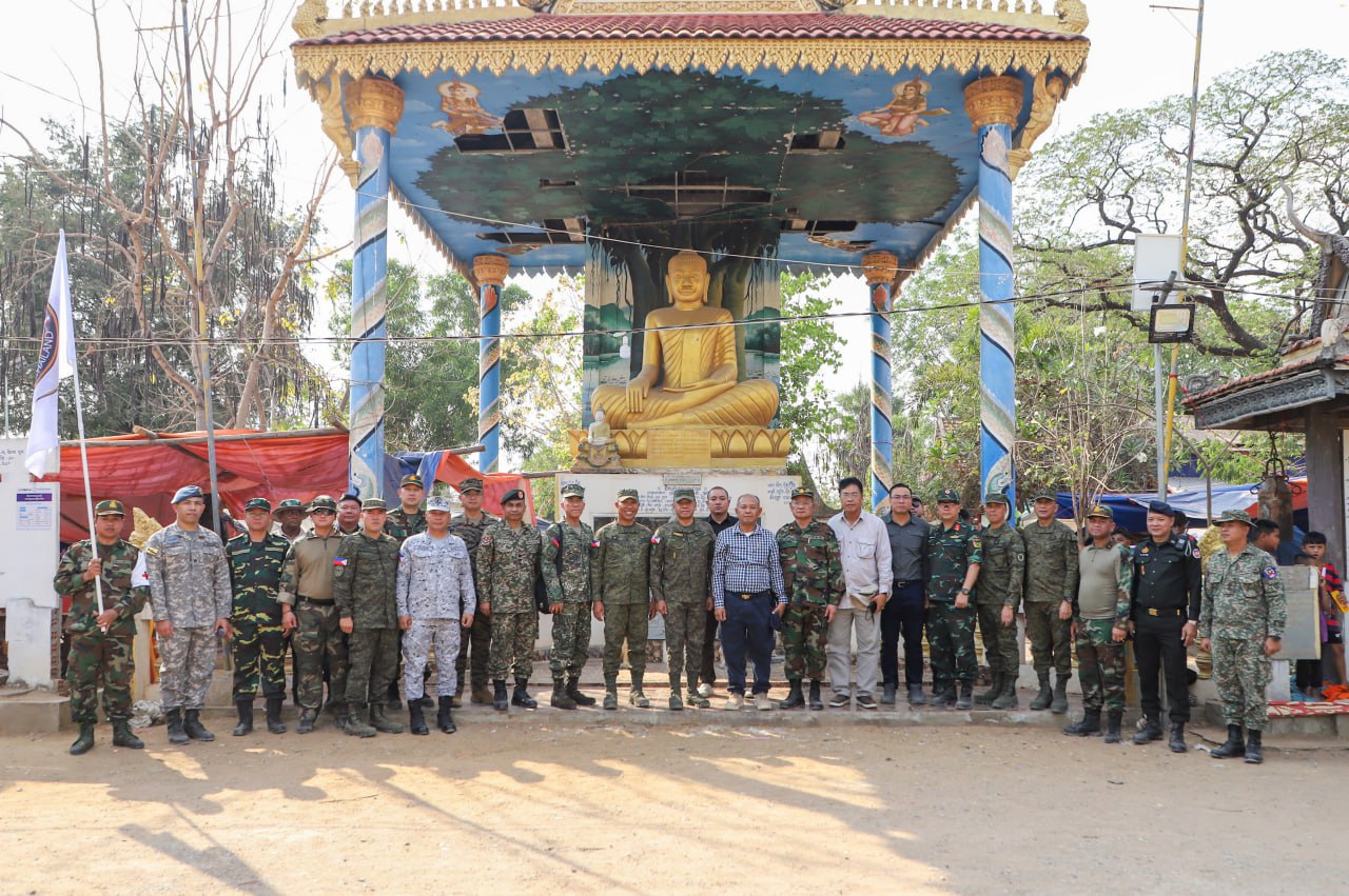 បន្ទាយមានជ័យៈ លោកជំទាវ ឧត្តមសេនីយ៍ឯក ម៉ាលី សុជាតា អ្នកនាំពាក្យក្រសួងការពារជាតិ នៃព្រះរាជាណាចក្រកម្ពុជា បានឱ្យដឹងថា នៅវេលាម៉ោង ១៤:៥៥នាទីរសៀល ថ្ងៃសុក្រ ទី១៣ ខែកុម្ភៈ ឆ្នាំ២០២៦ដដែលនោះ ក្រុមសម្របសម្រួល (CLG) នៃព្រះរាជាណាចក្រកម្ពុជា និងក្រុមអ្នកសង្កេតការណ៍អាស៊ាន (AOT) បានអមដំណើរគណៈប្រតិភូដឹកនាំដោយ លោក នាយឧត្តមសេនីយ៍ ROMEO S BRAWNER JR អគ្គមេបញ្ជាការ នៃកងទ័ពហ្វីលីពីន បានបន្តចុះសួរសុខទុកជនភៀសសឹកកម្ពុជា ដែលកំពុងបន្តរស់នៅជំរំក្នុងវត្តកណ្តោល ស្រុកថ្មពួក ខេត្តបន្ទាយមានជ័យ ដែលបច្ចុប្បន្នមានប្រជាជនសរុបចំនួន ១៥២០គ្រួសារ ស្មើនឹង ៥៧៣៥នាក់។