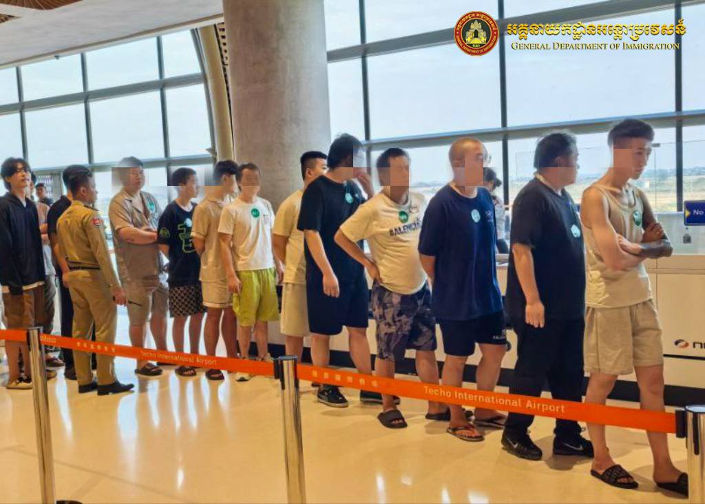 ភ្នំពេញៈ នៅថ្ងៃទី១៤ ១៥ ១៦ខែកុម្ភៈ ឆ្នាំ២០២៦ នាយកដ្ឋានស៊ើបអង្កេត និងអនុវត្តនីតិវិធី នៃអគ្គនាយកអន្តោប្រវេសន៍ បន្តធ្វើការបណ្តេញជនបរទេសសរុបចំនួន ១០៨៩នាក់ (ស្រី ៥៧នាក់) មាន ១៤សញ្ជាតិ រួមមាន ចិន យ៉ូហ្គង់ដា ម៉ាឡេស៊ី ឥណ្ឌូនេស៊ី ប៉ាគីស្ថាន កូរ៉េ វៀតណាម ចិនតៃវ៉ាន់ ហ្វីលីពីន នីហ្សេរីយ៉ា ឥណ្ឌា បង់ក្លាដេស កេនយ៉ា និងនេប៉ាល់ ត្រូវបានបណ្ដេញចេញតាមប៉ុស្តិ៍នគរបាលច្រកទ្វារអាកាសអន្តរជាតិតេជោ និងជនជាតិវៀតណាមបណ្ដេញចេញតាមប៉ុស្តិ៍នគរបាលច្រកទ្វារអន្តរជាតិព្រែកចាក ជនបរទេសទាំងអស់នេះពាក់ព័ន្ធករណីលួចឆ្លងដែន ឆបោកតាមប្រព័ន្ធអនឡាញ លេងល្បែងស៊ីសងតាមប្រព័ន្ធអនឡាញ ស្នាក់នៅគ្មានលិខិតឆ្លងដែន និងធ្វើការងារខុសច្បាប់នៅក្នុងព្រះរាជាណាចក្រកម្ពុជា។