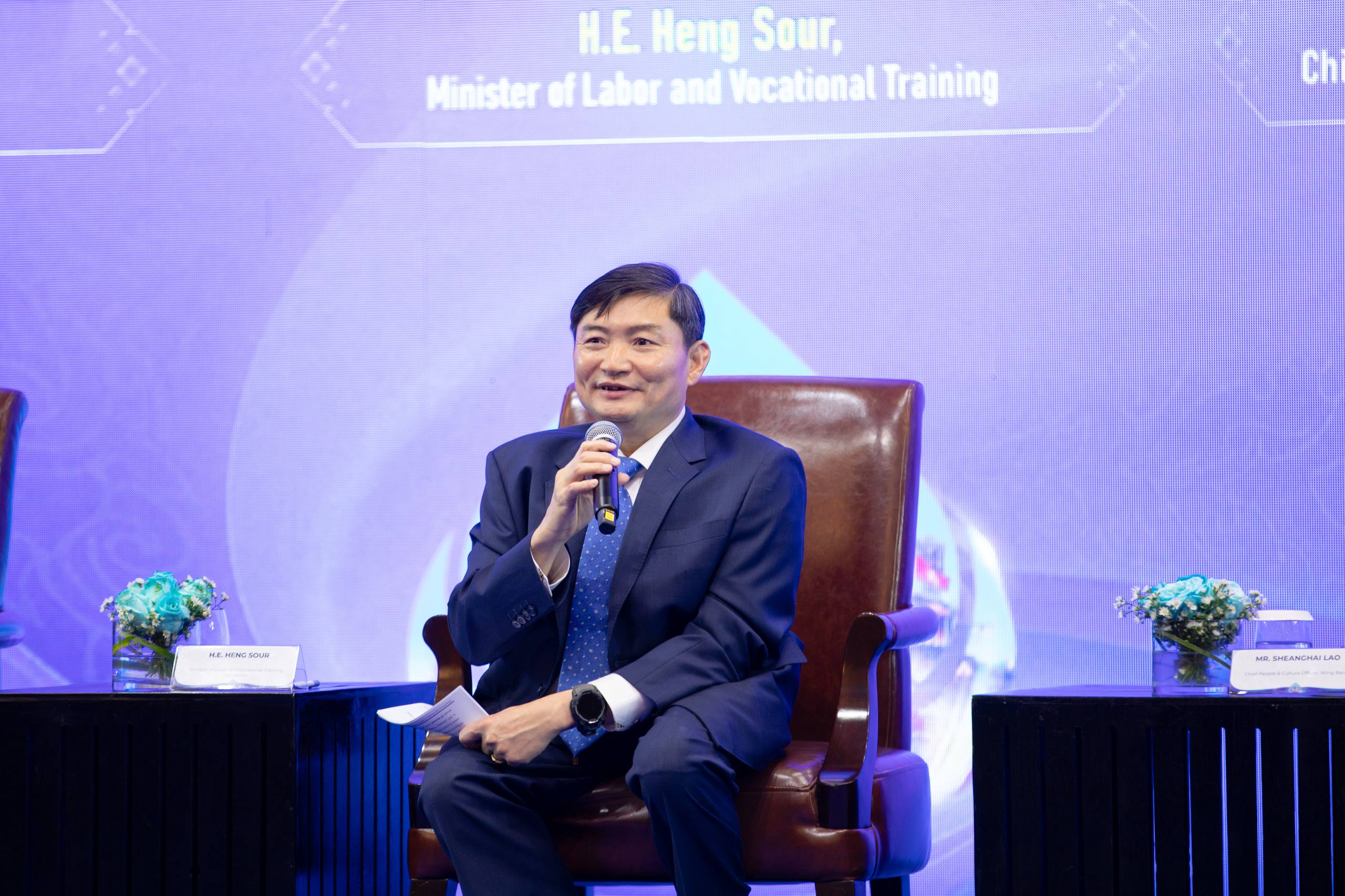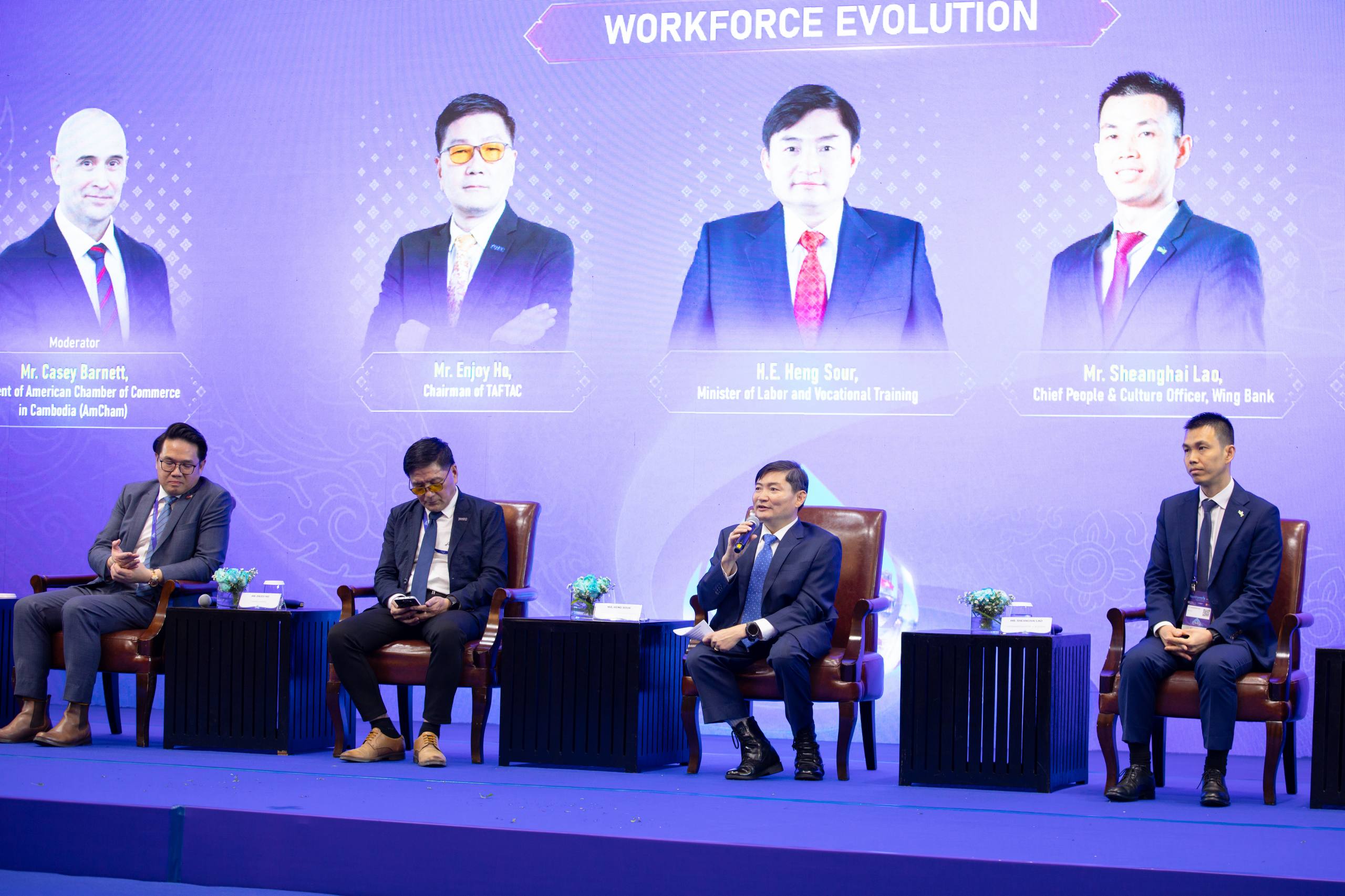ជាក់ស្តែង ផ្អែកលើផែនការយុទ្ធសាស្ត្រអភិវឌ្ឍន៍វិស័យការងារ សន្តិសុខសង្គម និងបណ្តុះបណ្តាលវិជ្ជាជីវៈ ឆ្នាំ២០២៤–២០២៨ ក្រសួងកំពុងជំរុញយ៉ាងសកម្មនូវគោលការណ៍ «ពលរដ្ឋម្នាក់ទទួលបានយ៉ាងហោចណាស់ជំនាញមួយសម្រាប់ជីវិត និងគ្មាននរណាម្នាក់ត្រូវបានទុកចោល»។ លោកក៏បានគូសបញ្ជាក់ថា កម្ពុជាផ្តល់ជូនវិនិយោគិននូវកម្លាំងពលកម្មវ័យក្មេង សកម្ម និងកំពុងអភិវឌ្ឍយ៉ាងឆាប់រហ័ស ដែលត្រូវបានគាំទ្រដោយប្រព័ន្ធបណ្តុះបណ្តាលជាតិដ៏រីកចម្រើន និងការប្តេជ្ញាចិត្តរឹងមាំរបស់រាជរដ្ឋាភិបាលក្នុងការធ្វើទំនើបកម្មហេដ្ឋារចនាសម្ព័ន្ធ TVET និងពង្រីកមូលនិធិអភិវឌ្ឍជំនាញ។