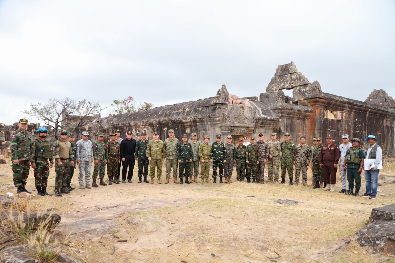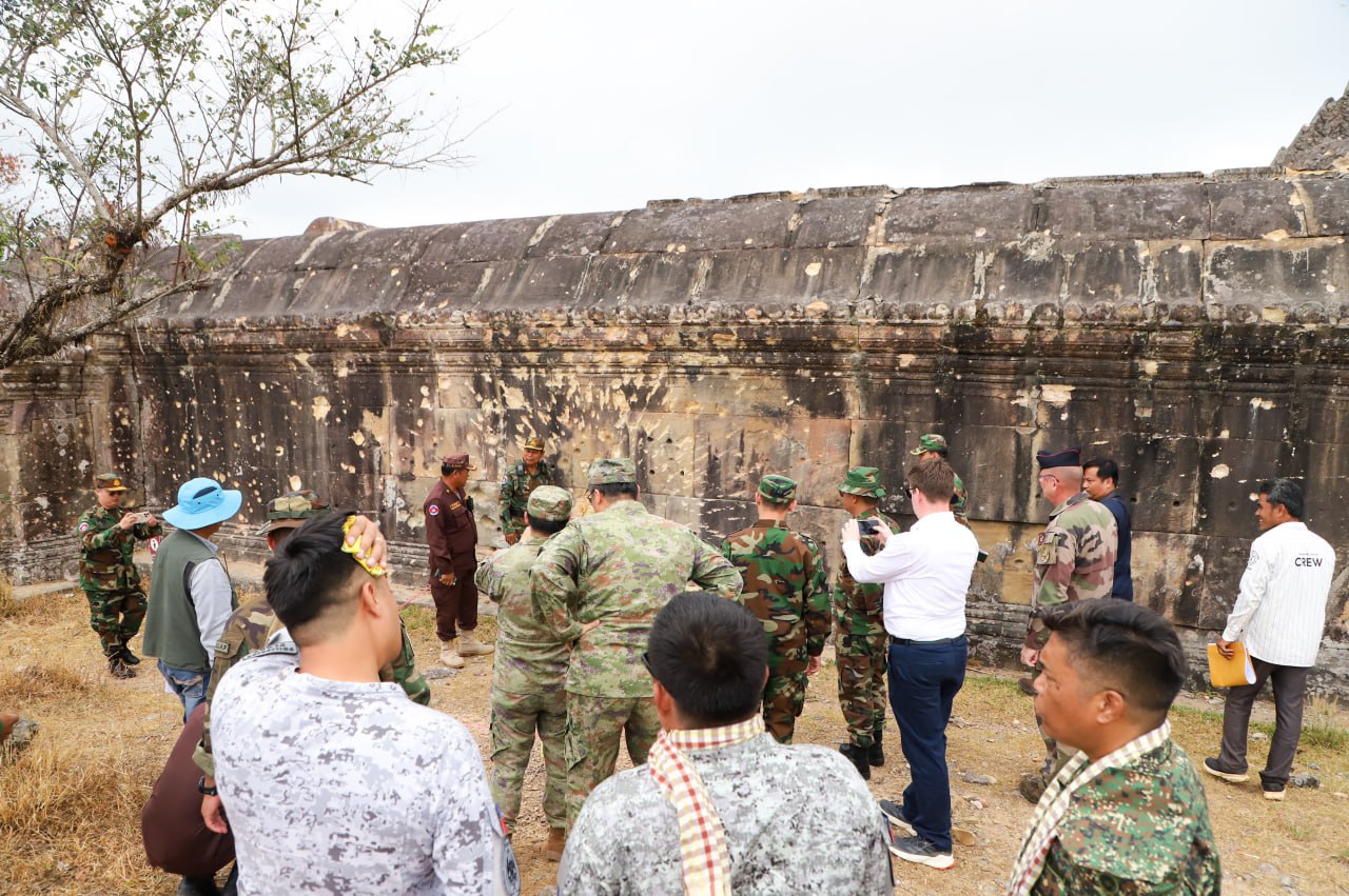 ភ្នំពេញៈ លោកស្រីឧត្តមសេនីយ៍ឯក ម៉ាលី សុជាតា អ្នកនាំពាក្យក្រសួងការពារជាតិ នៃព្រះរាជាណាចក្រកម្ពុជា បានឱ្យដឹងថា នៅថ្ងៃព្រហស្បតិ៍ ទី៥ ខែមីនា ឆ្នាំ២០២៦ វេលាម៉ោង ១១:១០នាទីព្រឹក ក្រសួងការពារជាតិ នៃព្រះរាជាណាចក្រកម្ពុជា បានសម្របសម្រួលជូនគណៈប្រតិភូអនុព័ន្ធយោធាបរទេស ប្រចាំព្រះរាជាណាចក្រកម្ពុជា ទាំង១២ប្រទេស អញ្ជើញទៅកាន់តំបន់ប្រាសាទព្រះវិហារ និងតំបន់ជុំវិញ ស្ថិតនៅឃុំស្រអែម ស្រុកជាំក្សាន្ត ខេត្តព្រះវិហារ ព្រះរាជាណាចក្រកម្ពុជា ដែលជាសម្បត្តិបេតិកភណ្ឌពិភពលោកដ៏មានតម្លៃបំផុតរបស់មនុស្សជាតិ ដែលរងការខូចខាតយ៉ាងដំណំ ដោយសារការវាយប្រហារពីសំណាក់យោធាថៃ។