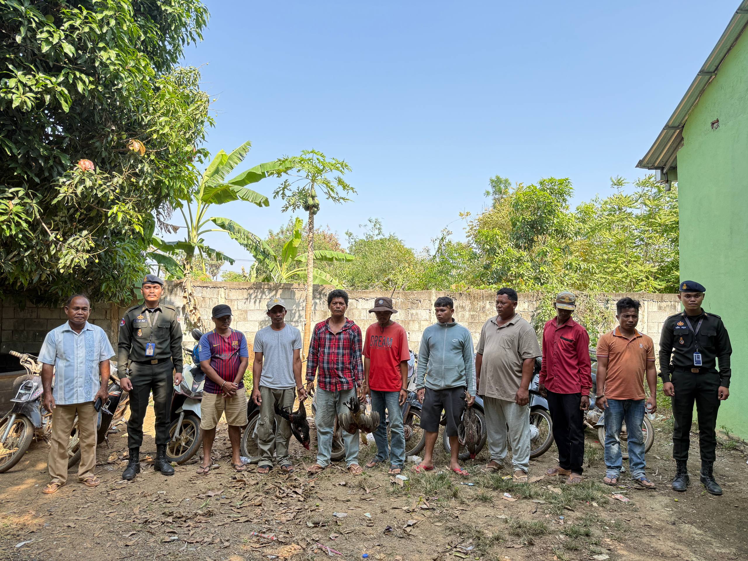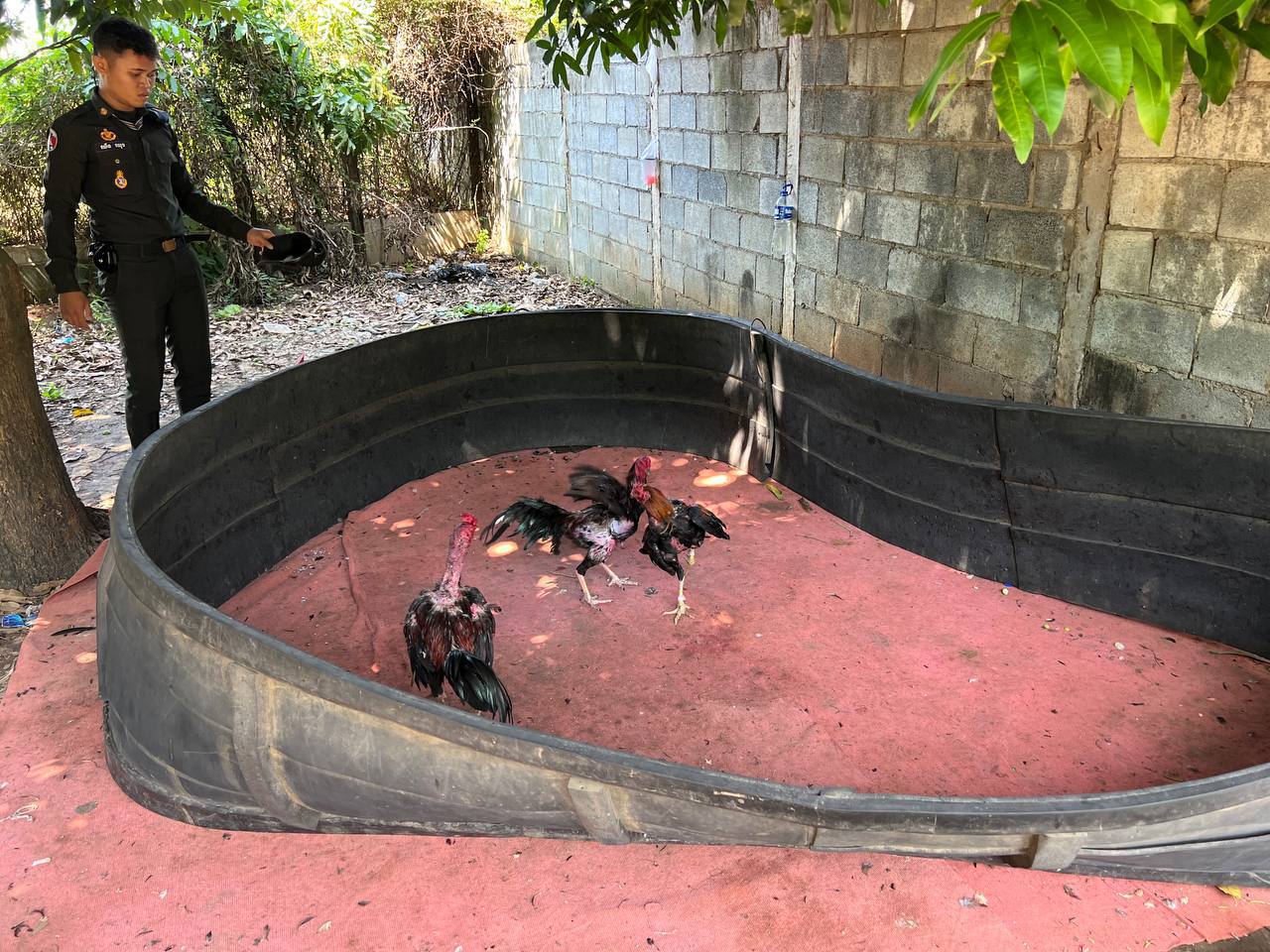 បង្រ្កាប និងឃាត់ខ្លួនមនុស្ស៨នាក់ ពាក់ព័ន្ធករណីលេងល្បែងស៊ីសងជល់មាន់ ក្នុងភូមិសាស្ត្រក្រុងច្បារមន