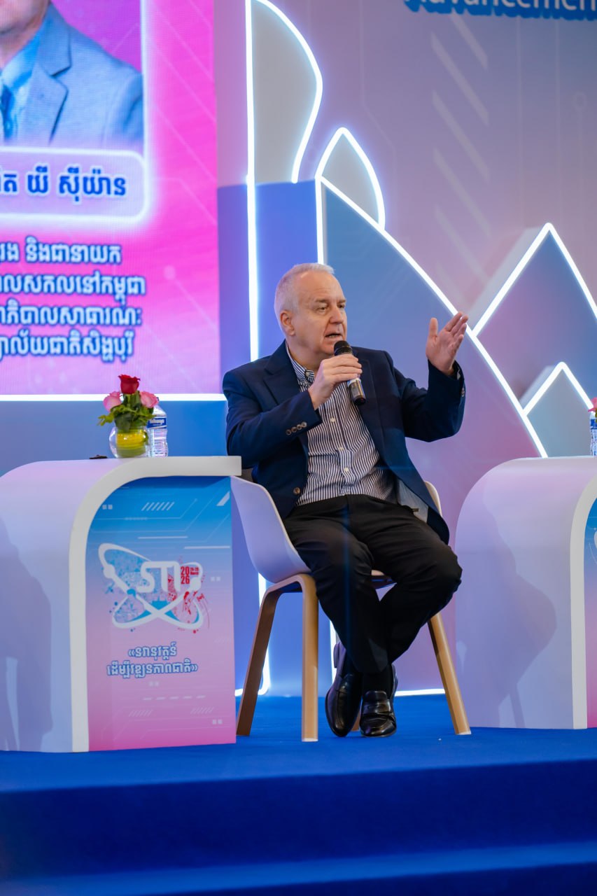 លោក សាស្ត្រាចារ្យបណ្ឌិត ឆែមគៀត រិទ្ធី ទេសរដ្ឋមន្ត្រី ប្រធានក្រុមប្រឹក្សាសេដ្ឋកិច្ច សង្គមកិច្ច និងវប្បធម៌ និងជាប្រធានគណៈប្រឹក្សាយោបល់នៃក្រុមប្រឹក្សាជាតិ វ.ប.ន. បានផ្តោតលើតម្រូវការបន្ទាន់ក្នុងការពង្រឹងកិច្ចសហការរវាងស្ថាប័នរដ្ឋ គ្រឹះស្ថានសិក្សា និងវិស័យឯកជន។ លោកបានលើកឡើងថា៖ "នវានុវត្តន៍មិនមែនសំដៅត្រឹមតែលើបច្ចេកវិទ្យាប៉ុណ្ណោះទេ ប៉ុន្តែផ្តោត សំខាន់ លើមនុស្ស និងអាជីវកម្ម។ ខណៈពេលដែលរាជរដ្ឋាភិបាលជាអ្នកកំណត់បទប្បញ្ញត្តិ និងគោលនយោបាយ វិស័យឯកជនគឺជាកម្លាំងចលករយ៉ាងសំខាន់ក្នុងការជំរុញការវិនិយោគ និងភាពជាអ្នកដឹកនាំដើម្បីធានា បាន នូវវឌ្ឍនភាពប្រកបដោយចីរភាព។”