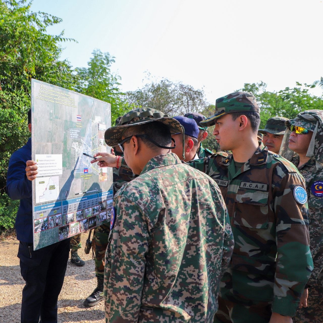ភ្នំពេញៈ លោកស្រីឧត្តមសេនីយ៍ឯក ម៉ាលី សុជាតា អ្នកនាំពាក្យក្រសួងការពារជាតិ នៃព្រះរាជាណាចក្រកម្ពុជា បានឱ្យដឹងថា នៅថ្ងៃសៅរ៍ ទី២៨ ខែមីនា ឆ្នាំ២០២៦ វេលាម៉ោង ៨:២៥នាទីព្រឹក ក្រុមសម្របសម្រួល (CLG) នៃព្រះរាជាណាចក្រកម្ពុជា បានសម្របសម្រួលដល់ក្រុមអ្នកសង្កេតការណ៍អាស៊ាន (AOT) ចុះសង្កេតការណ៍ ផ្ទៀងផ្ទាត់ និងរាយការណ៍អំពីស្ថានភាពព្រំដែននៅតំបន់ភូមិព្រៃចាន់ ខេត្តបន្ទាយមានជ័យ លើការគោរព និងអនុវត្តវិធានការទាំងអស់ក្នុងសេចក្តីប្រកាសរួម ក្រោយបទឈប់បាញ់ចូលជាធរមាន។