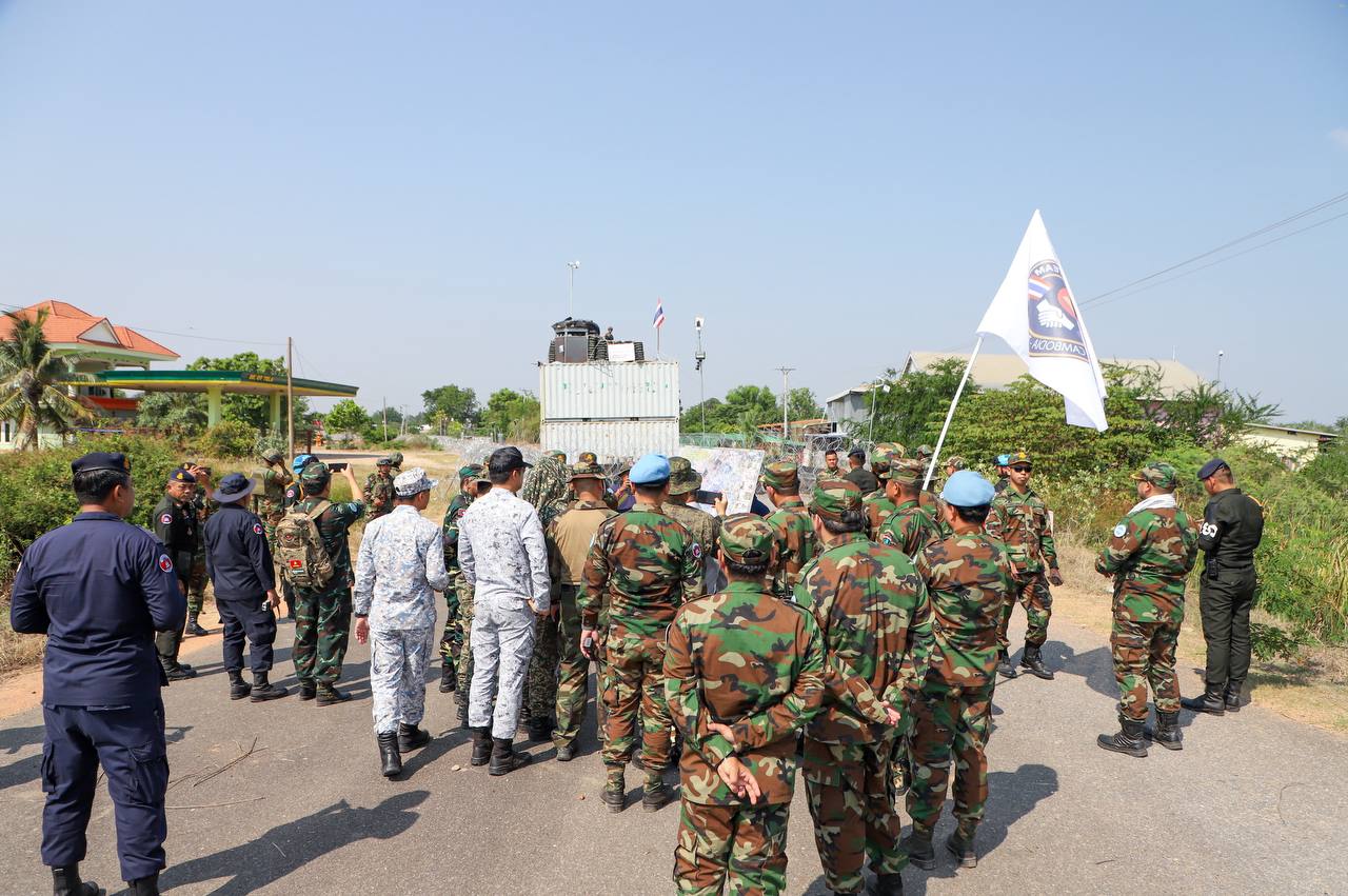 បន្ទាយមានជ័យៈ លោកស្រីឧត្តមសេនីយ៍ឯក ម៉ាលី សុជាតា អ្នកនាំពាក្យក្រសួងការពារជាតិ នៃព្រះរាជាណាចក្រកម្ពុជា បានឱ្យដឹងថា នៅថ្ងៃសៅរ៍ ទី២៨ ខែមីនា ឆ្នាំ២០២៦ វេលាម៉ោង ៩:៣៥នាទីព្រឹក ក្រុមសម្របសម្រួល (CLG) នៃព្រះរាជាណាចក្រកម្ពុជា បានសម្របសម្រួលដល់ក្រុមអ្នកសង្កេតការណ៍អាស៊ាន (AOT) ចុះសង្កេតការណ៍ ផ្ទៀងផ្ទាត់ និងរាយការណ៍អំពីស្ថានភាពព្រំដែននៅតំបន់ច្រកបឹងត្រកួន ខេត្តបន្ទាយមានជ័យលើការគោរព និងអនុវត្តវិធានការទាំងអស់ក្នុងសេចក្តីប្រកាសរួម ក្រោយបទឈប់បាញ់ចូលជាធរមាន។
