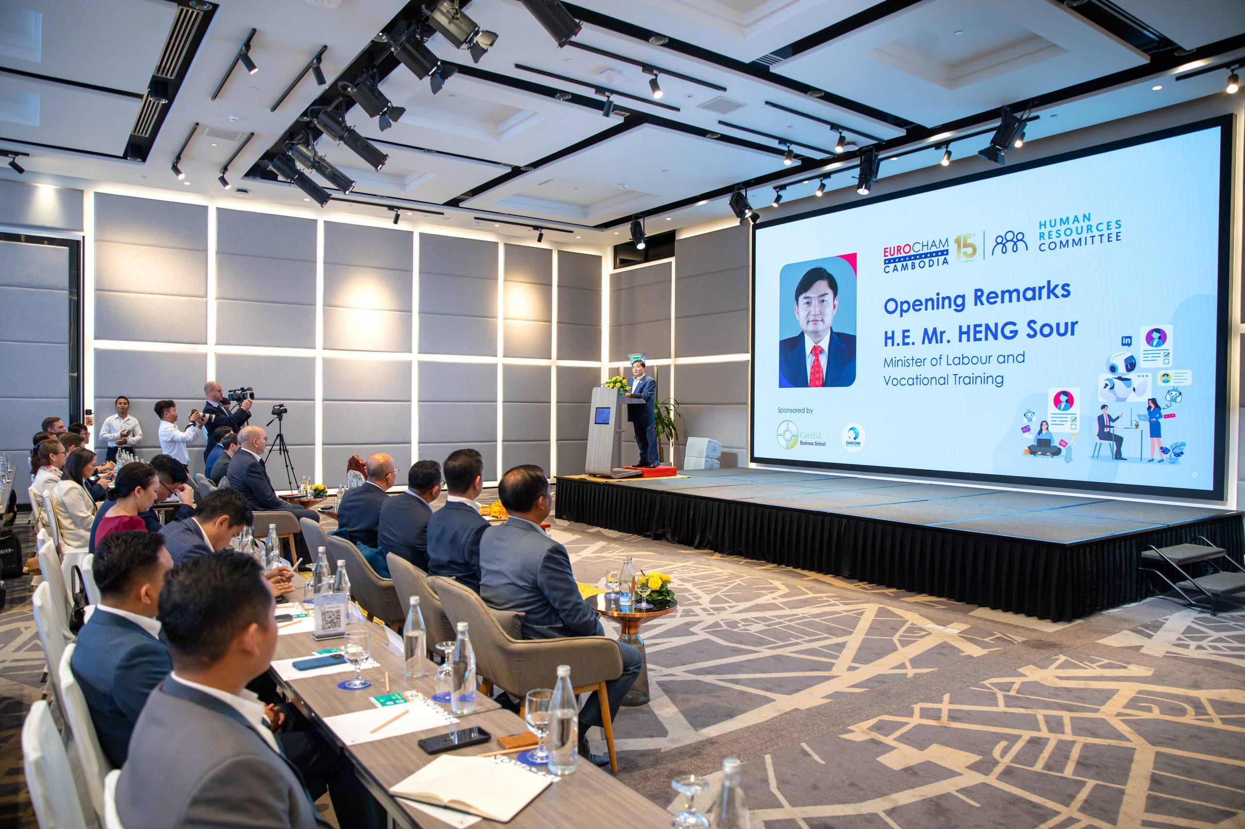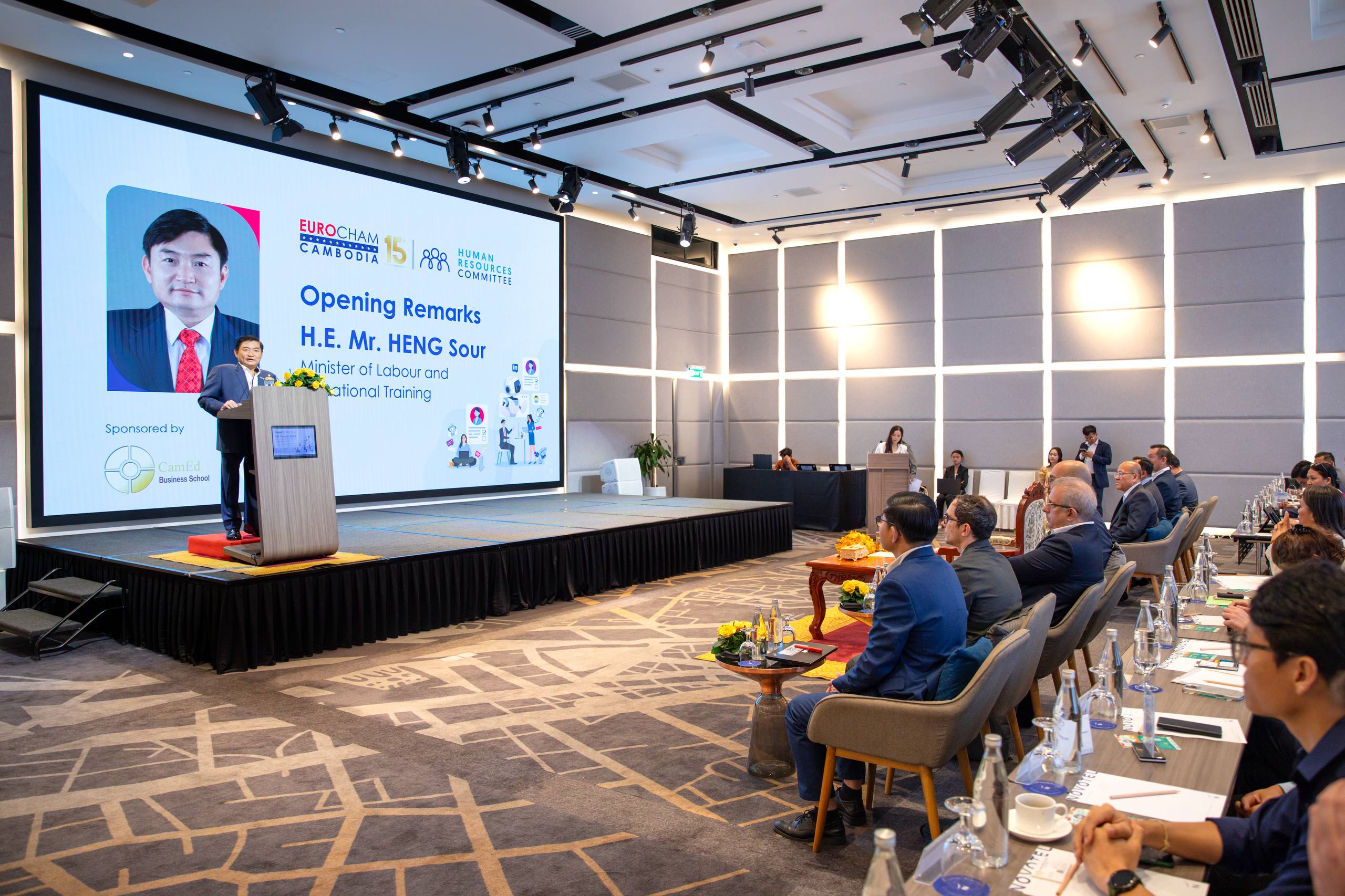 ក្នុងវេទិកានេះដែរ លោក Tassilo Brinzer ប្រធានសភាពាណិជ្ជកម្មអឺរ៉ុបប្រចាំកម្ពុជា (EuroCham) បានថែ្លងអំណរគុណយ៉ាងជ្រាលជ្រៅចំពោះ ឯកឧត្តម ហេង សួរ ដែលបន្តគាំទ្រ និងចូលរួមវេទិកានេះជារៀងរាល់ឆ្នាំ។ លោកបានលើកឡើងថា កម្លាំងការងារនៅតែជាឆ្អឹងខ្នងដ៏សំខាន់នៃការអភិវឌ្ឍសេដ្ឋកិច្ចកម្ពុជា ខណៈដែលកិច្ចសហការរវាងរាជរដ្ឋាភិបាល និងវិស័យឯកជនក៏កាន់តែមានសារៈសំខាន់ លើការសិក្សាផ្អែកលើការអនុវត្តការងារ កម្មវិធីហ្វឹកហាត់ការងារ និងការបណ្តុះបណ្តាលនៅកន្លែងធ្វើការ។