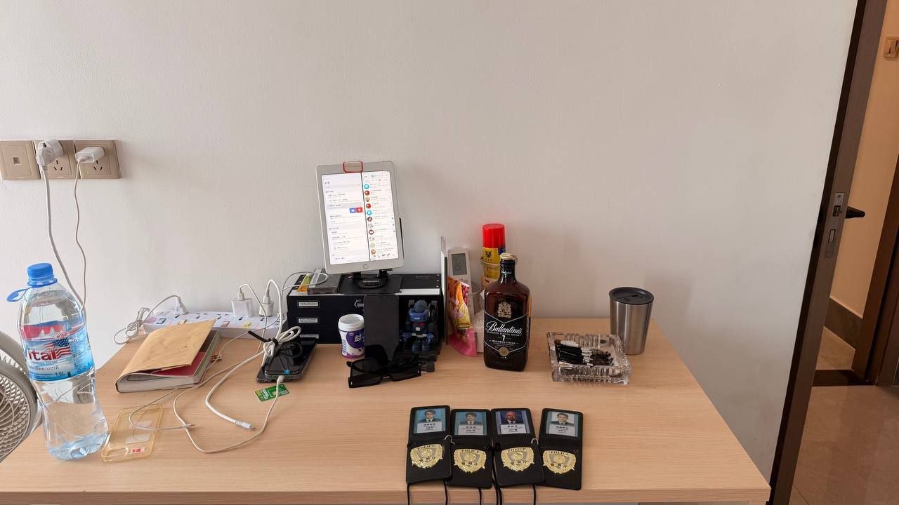 ក្នុងនោះក្រុមការងារបានត្រួតពិនិត្យរកឃើញសម្ភារៈដែលបម្រើដល់បទល្មើសរួមមានៈទូរសព្ទ ចំនួន ១៤គ្រឿង, CPU ១គ្រឿង , monitor ចំនួន ១ គ្រឿង, iPad ៣គ្រឿង, អាវនគរបាលជប៉ុនចំនួន៥ និងមួកនគរបាលជប៉ុន ២, និងឯកសារនគរបាលក្លែងក្លាយមួយចំនួន។