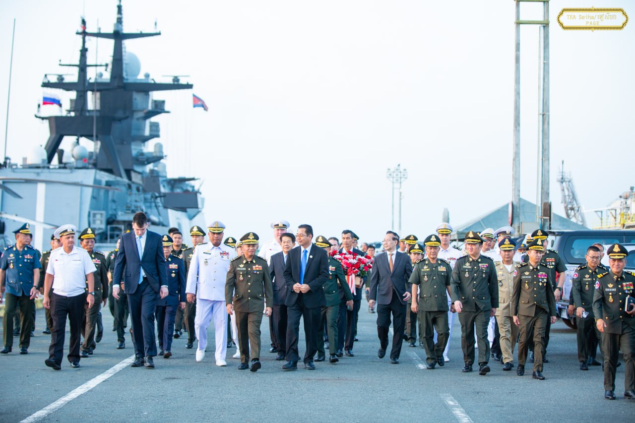 លោក នាយឧត្តមសេនីយ៍ ទៀ សីហា ឧបនាយករដ្ឋមន្ត្រី រដ្ឋមន្ត្រីក្រសួងការពារជាតិ បានទទួលសូមស្វាគមន៍នាវាចម្បាំងរបស់រុស្ស៊ីចំនួន២គ្រឿង (នាវា Sovershenny លេខ៣៣៣ និងនាវា Rezky លេខ៣៤៣) មកពីកងនាវាប្រចាំតំបន់ប៉ាស៊ីហ្វិកនៃកងទ័ពជើងទឹកសហព័ន្ធរុស្ស៊ី ដែលបានចូលចតនៅកំពង់ផែស្វយ័តក្រុងព្រះសីហនុ ដើម្បីបំពេញទស្សនកិច្ចរយៈពេល៣ថ្ងៃនៅកម្ពុជា ជាមួយនាវិកសរុបប្រមាណ ២៦២នាក់ នាថ្ងៃទី៧ ខែមេសា ឆ្នាំ២០២៦ ដំណើរទស្សនកិច្ចរបស់កងទ័ពជើងទឹករុស្ស៊ី និងនាវាចម្បាំងនាពេលនេះ នឹងលើកកម្ពស់ទំនាក់ទំនង និងកិច្ចសហប្រតិបត្តិការលើវិស័យការពារជាតិរវាងកម្ពុជា និងរុស្ស៊ី ដែលប្រទេសទាំងពីរតែងប្រកាន់យកក្នុងប្រវត្តិនៃទំនាក់ទំនង។