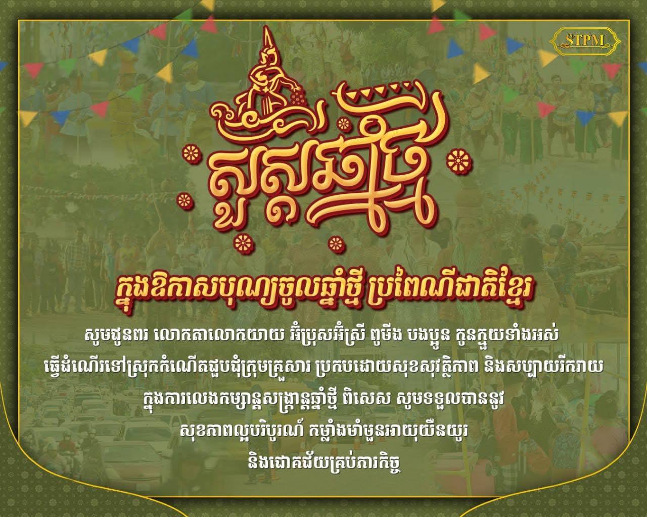 ភ្នំពេញៈ ក្នុងឱកាសបុណ្យចូលឆ្នាំថ្មី ប្រពៃណីជាតិខ្មែរ សម្ដេចធិបតី ហ៊ុន ម៉ាណែត នាយករដ្ឋមន្រ្ដីកម្ពុជា សូមជូនពរ លោកតាលោកយាយ អ៊ំប្រុសអ៊ំស្រី ពូមីង បងប្អូនទាំងអស់ ធ្វើដំណើរទៅស្រុកកំណើតជួបជុំក្រុមគ្រួសារ ប្រកបដោយសុខសុវត្ថិភាព និងសប្បាយរីករាយ ក្នុងការលេងកម្សាន្តសង្ក្រាន្តឆ្នាំថ្មី ពិសេស សូមទទួលបាននូវ សុខភាពល្អបរិបូរណ៍ កម្លាំងមាំមួនអាយុយឺនយូរ និងជោគជ័យគ្រប់ភារកិច្ច។
