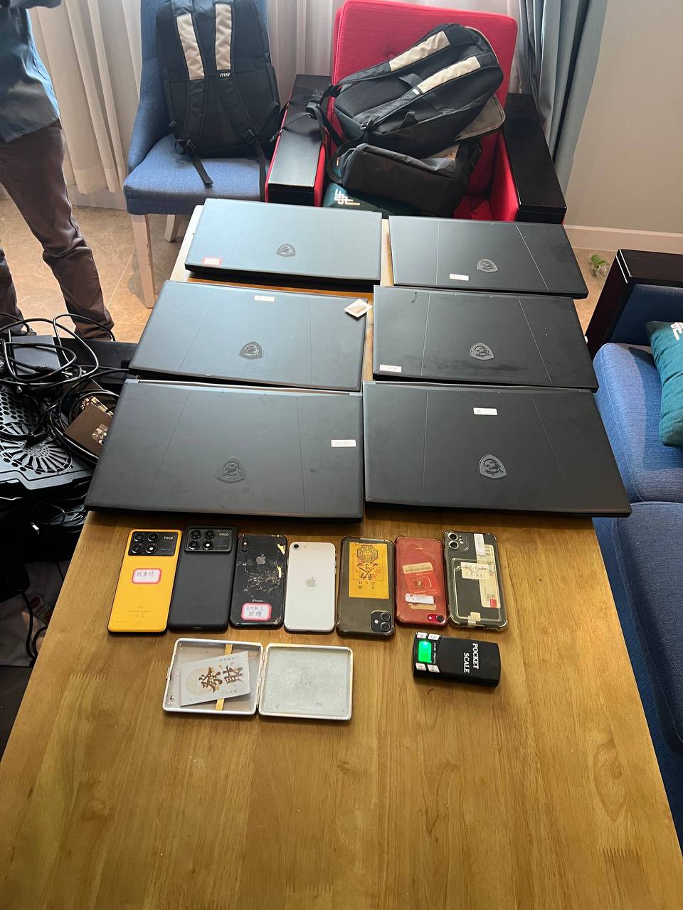 ក្នុងប្រតិបត្តិការនេះសមត្ថកិច្ចបានរកឃើញសម្ភារៈបច្ចេកទេសជាច្រើនដែលបម្រើឱ្យសកម្មភាពឆបោក រួមមានទូរសព្ទដៃចំនួន ៦១៥ គ្រឿង, Laptop ១៤០ គ្រឿង, All in One ៣១ គ្រឿង, Monitor ៦ គ្រឿង និង CPU ៣ គ្រឿង។