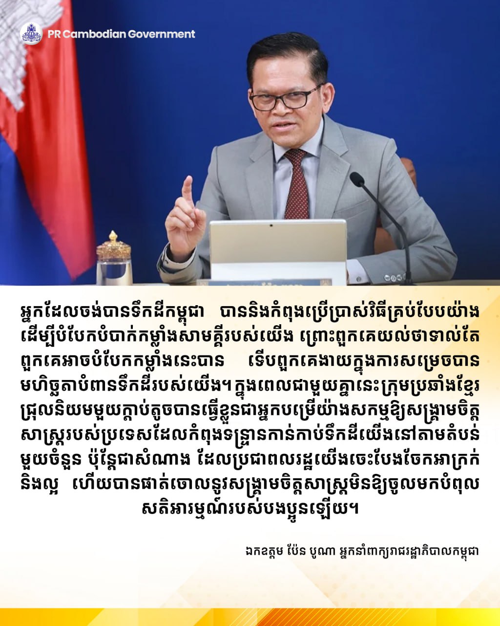 ជាលទ្ធផលនៃកិច្ចជំនួបដ៏មានតម្លៃនាពេលនេះ លោករដ្ឋមន្ត្រី ស្នើសុំឱ្យលោក លោកស្រី ចេញជាសារ ឬ វីដេអូ ដែលបង្ហាញពីសភាពការណ៍ពិតនៅកម្ពុជា៖ សន្តិភាព សន្តិសុខ សណ្តាប់ធ្នាប់សាធារណៈ និងបកស្រាយទាន់ពេលវេលាចំពោះការផ្សព្វផ្សាយអវិជ្ជមាន ព័ត៌មានក្លែងក្លាយ ដែលជះឥទ្ធិពលដល់កិត្តិនាមកម្ពុជា និងវិស័យទេសចរណ៍កម្ពុជា ។