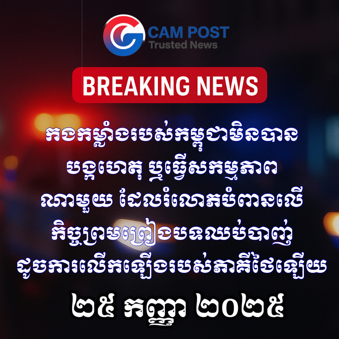កងកម្លាំងរបស់កម្ពុជាមិនបានបង្កហេតុ ឬធ្វើសកម្មភាពណាមួយ ដែលរំលោភបំពានលើក