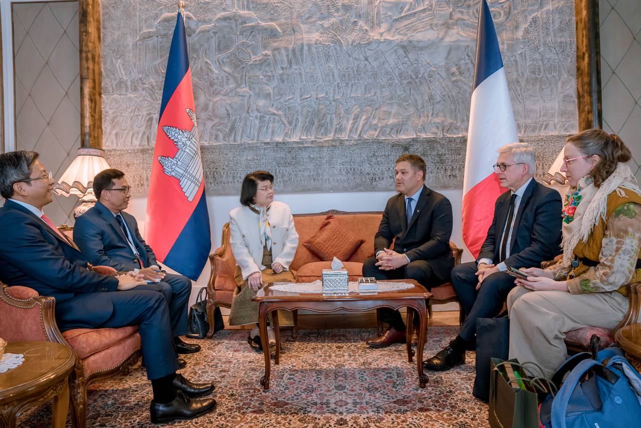 ក្នុងការទទួលជួបពិភាក្សាការងារជាមួយ លោក ថូម៉ាស់ ឡាំ (Thomas Lam) សមាជិករដ្ឋសភា និងជាប្រធានក្រុមមិត្តភាពរដ្ឋសភាបារាំង-កម្ពុជា នៅថ្ងៃទី៣០ ខែតុលា ឆ្នាំ២០២៥ នៅក្នុងនិវេសនដ្ឋានឯកអគ្គរាជទូតកម្ពុជា ប្រចាំនៅសាធារណរដ្ឋបារាំង ដើម្បីពង្រឹង និងពង្រីកចំណងមិត្តភាព កិច្ចសហប្រតិបត្តិការ រដ្ឋសភាប្រទេសទំាងពីរឱ្យកាន់តែរឹងមាំឡើង សម្តេចមហារដ្ឋសភាធិការធិបតី ឃួន សុដារី ប្រធានរដ្ឋសភានៃព្រះរាជាណាចក្រកម្ពុជា បានគូសបញ្ជាក់ថា ចំណងមិត្តភាពជាប្រវត្តិសាស្រ្តកម្ពុជា-បារំាង មានការរីកចម្រើនគួរកត់សម្គាល់នៅក្នុងរយៈពេលចុងក្រោយនេះ តាមរយៈការផ្លាស់ប្តូរដំណើរទស្សនកិច្ច និងមនោសញ្ចេតនាដ៏ជ្រាលជ្រៅនៃថ្នាក់ដឹកនាំប្រទេសទំាងពីរ។