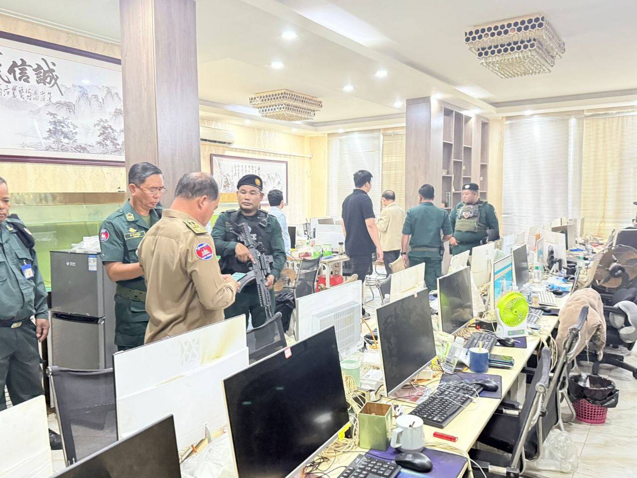 ជនសង្ស័យដែលបានឃាត់ខ្លួនទាំង២៦៣នាក់នោះ រួមមានៈ ជនជាតិប៉ាគីស្ថាន ១១នាក់ , បង់ក្លាដេស២៣នាក់, ចិន ២០៧នាក់ (ស្ត្រី ០៧នាក់), ស្ត្រីមីយ៉ាន់ម៉ា ០៦នាក់, នេប៉ាល់ ០៤នាក់, វៀតណាម ០៧នាក់ (ស្ត្រី ០៣នាក់) , ម៉ាឡេស៊ី ០៤នាក់ និងស្ត្រីជនជាតិឡាវ០១នាក់ ។ ចំណែក វត្ថុតាងដកហូត មាន កុំព្យូទ័រលើតុ 860 គ្រឿង, ទូរស័ព្ទ 4,129 គ្រឿង, កុំព្យូទ័រយួរដៃ 16 គ្រឿង និងiPad 14 គ្រឿង។ ប្រតិបត្តិការនោះ ត្រូវបានដឹកនាំធ្វើឡើងកាលពីថ្ងៃទី៩ ខែវិច្ឆិកា ឆ្នាំ២០២៥ ក្រោមការសម្របសម្រួលពីលេខាធិការដ្ឋាន នៃគណកម្មការចំពោះកិច្ចប្រឆាំងបទល្មើស ឆបោកតាមប្រព័ន្ធបច្ចេកវិទ្យា (គ.ប.ឆ.ប.) និងមានការចូលរួមសហការពីអគ្គស្នងការដ្ឋាននគរបាលជាតិ , អគ្គនាយកដ្ឋានអន្តោប្រវេសន៍ គណៈបញ្ជាការឯកភាពខេត្តព្រះស៊ីហនុ អាជ្ញាធរពាក់ព័ន្ធក្នុងខេត្ត និងដោយមានការសម្របសម្រួលនីតិវិធីពីលោកឈីវ អ៉ិចគង់ព្រះរាជអាជ្ញារង នៃអយ្យការអមសាលាដំបូងខេត្តព្រះសីហនុ ដោយបានចុះត្រួតពិនិត្យនៅទីតាំងសង្ស័យ និងឈានដល់បានឃាត់ខ្លួនជនសង្ស័យពាក់ពាក់ព័ន្ធនឹងការប្រព្រឹត្តបទល្មើសឆបោកតាមប្រព័ន្ធ បច្ចេកវិទ្យា ខាងលើនេះ។