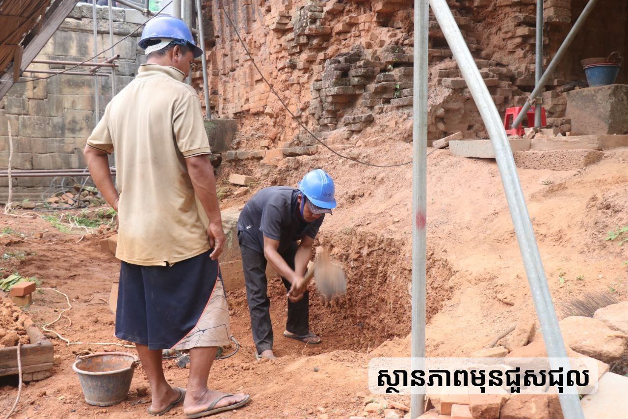អ្នកស្រី ឈុន រតនា មន្ត្រីនាយកដ្ឋានអភិរក្សប្រាសាទ និងបុរាណវិទ្យានៃអាជ្ញាធរជាតិអប្សរា ឱ្យដឹងថា គម្រោងជួសជុលតួប៉មប្រាសាទឥដ្ឋលេខ១៣ដំណាក់កាលទី១ បានចាប់ផ្ដើមតាំងពីខែឧសភា ដល់ខែវិច្ឆិកា ឆ្នាំ២០២៥នេះ។ ការជួសជុលដំណាក់កាលទី១នេះ ក្រុមការងារបានជួសជុលតួប៉មទី១៣ ចាប់តាំងតែពីខឿន ជើងជញ្ជាំង រហូតដល់ផ្តែរខាងលើ សរុបកម្ពស់ប្រវែង៥ម៉ែត្រ ដែលរងការពុកផុយ ខូចខាតដោយសារកត្តាអាយុកាល សម្ភារសំណង់ពុកផុយដោយសារធម្មជាតិ និងកង្វះការថែទាំយូរអង្វែង។