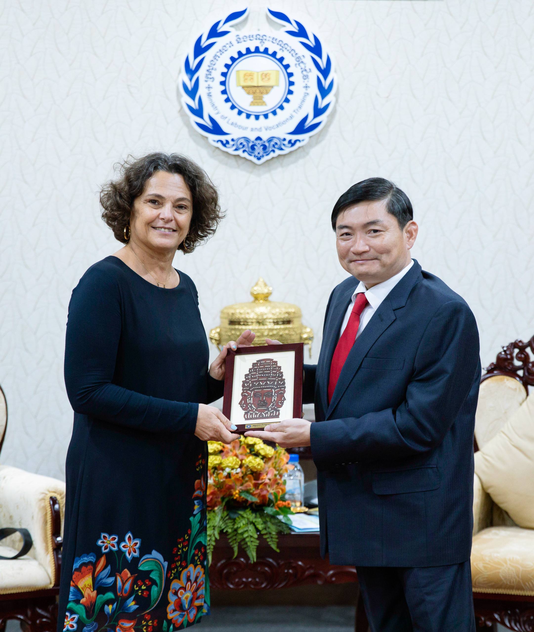 ក្នុងជំនួបសម្តែងការគួរសម និងពិភាក្សាការងារជាមួយ លោកស្រីបណ្ឌិត Alona Fisher-Kamm ឯកអគ្គរដ្ឋទូតវិសាមញ្ញ និងពេញសមត្ថភាពនៃរដ្ឋអ៊ីស្រាអែល ប្រចាំព្រះរាជាណាចក្រកម្ពុជា នៅទីស្តីការក្រសួងការងារ និងបណ្តុះបណ្តាលវិជ្ជាជីវៈ កាលពីរសៀលថ្ងៃទី២៥ ខែវិច្ឆិកា ឆ្នាំ២០២៥ លោក ហេង សួរ រដ្ឋមន្ត្រីក្រសួងការងារ និងបណ្តុះបណ្តាលវិជ្ជាជីវៈ បានសម្ដែងនូវការស្វាគមន៍ និងអបអរសាទរលោកជំទាវ ដែលត្រូវបានតែងតាំងជាឯកអគ្គរដ្ឋទូតថ្មី ប្រចាំព្រះរាជាណាចក្រកម្ពុជា។