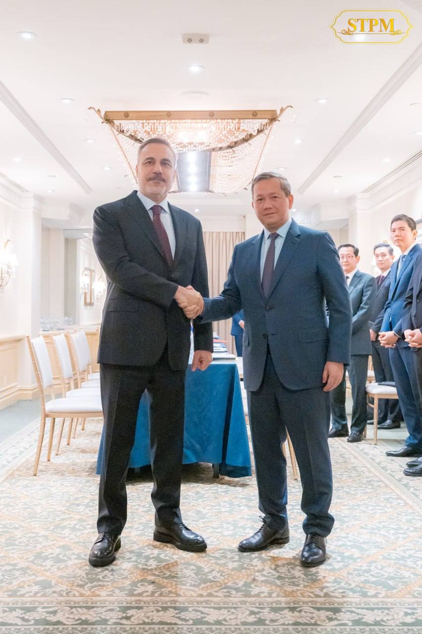 ក្នុងជំនួបសម្ដែងការគួរសម និងពិភាក្សាការងារ ជាមួយសម្ដេចមហាបវរធិបតី ហ៊ុន ម៉ាណែត នាយករដ្ឋមន្ត្រីនៃព្រះរាជាណាចក្រកម្ពុជា ក្នុងឱកាសនៃការអញ្ជើញដឹកនាំគណៈប្រតិភូជាន់ខ្ពស់រាជរដ្ឋាភិបាលកម្ពុជា ចូលរួមកិច្ចប្រជុំលើកដំបូងនៃក្រុមប្រឹក្សាសន្តិភាព (Board of Peace) នៅរដ្ឋធានីវ៉ាស៊ីនតោន សហរដ្ឋអាម៉េរិក នាព្រឹកថ្ងៃទី២០ ខែកុម្ភៈ ឆ្នាំ២០២៦, លោក Hakan Fidan រដ្ឋមន្ត្រីការបរទេសតួកគីយ៉េបានវាយតម្លៃខ្ពស់ចំពោះភាពរីកចម្រើននៃទំនាក់ទំនង និងកិច្ចសហប្រតិបត្តិការរវាងកម្ពុជា និងតួកគីយ៉េ លើវិស័យសំខាន់ៗជាច្រើន។ ឆ្លៀតក្នុងឱកាសនេះ, លោករដ្ឋមន្ត្រីសូមគោរពអញ្ជើញសម្ដេចធិបតីបំពេញទស្សនកិច្ចផ្លូវការនៅសាធារណរដ្ឋតួកគី ក្នុងពេលវេលាសមស្រប ក្នុងគោលបំណងបន្តជំរុញនូវការរីកចម្រើននៃទំនាក់ទំនង និងកិច្ចសហប្រតិបត្តិការរវាងប្រទេសទាំងពីរឱ្យកាន់តែមានភាពជិតស្និទ។