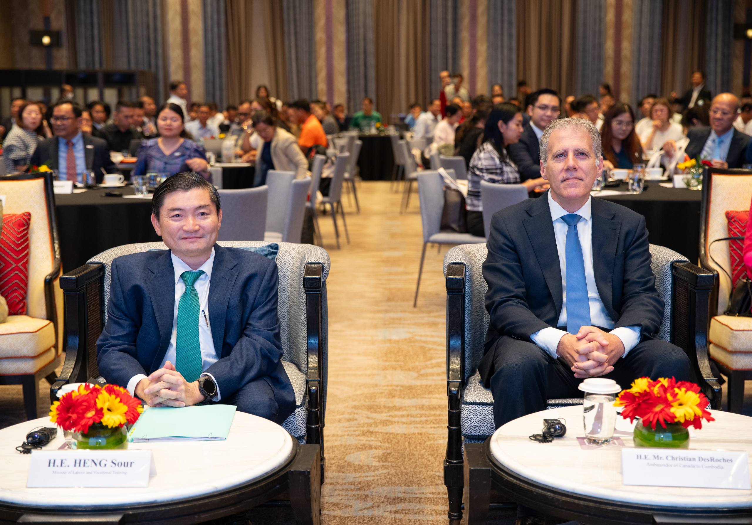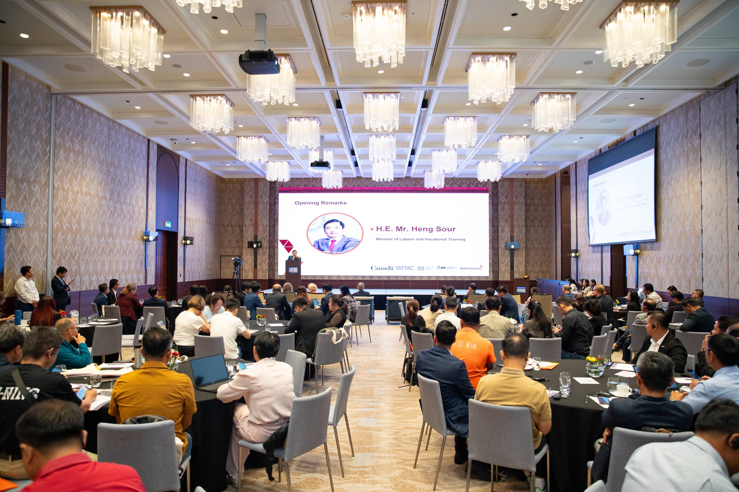 នាឱកាសនោះដែរ លោកChristian DesRoches ឯកអគ្គរដ្ឋទូតកាណាដាប្រចាំកម្ពុជា និងលោកស្រី Froukje Boele ប្រធានគម្រោង ILO-BFC បានសង្កត់ធ្ងន់ពីសារៈសំខាន់នៃទំនាក់ទំនងវិជ្ជាជីវៈ ដែលកើតចេញពីការប្តេជ្ញាចិត្តរួមរបស់រដ្ឋាភិបាល និយោជក និងសហជីព ក្នុងការពង្រឹងវិស័យផលិតកម្ម និងលើកកម្ពស់សិទ្ធិកម្មករនិយោជិត តាមរយៈសន្ទនាសង្គម និងកិច្ចសហប្រតិបត្តិការ។ ពួកគាត់ប្តេជ្ញាគាំទ្រក្នុងការអភិវឌ្ឍប្រព័ន្ធទំនាក់ទំនងវិជ្ជាជីវៈដ៏រឹងមាំ ដែលជួយបង្កើនផលិតភាព និងស្ថិរភាពការងារ ព្រោះថាការចូលរួមរបស់ភាគីទាំងអស់ និងការប្រើប្រាស់បច្ចេកវិទ្យាថ្មី នឹងជួយបន្តលើកកម្ពស់វិស័យនេះឱ្យមានចីរភាព៕