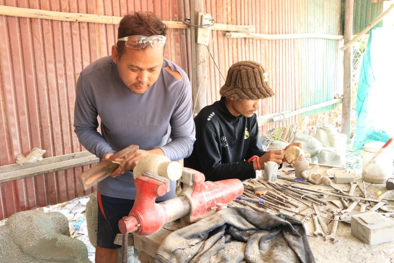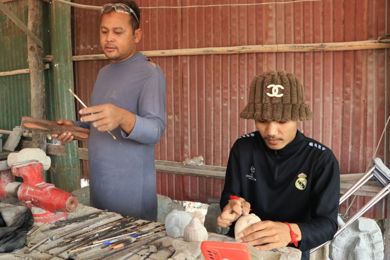 លោកសេក គីន ជាយុវជនម្នាក់ដែលបានចូលរៀនជំនាញដាប់ឆ្លាក់ថ្ម នៅទីនោះរយៈពេល៦ខែមកហើយ ឱ្យដឹងថាបច្ចុប្បន្ន លោកចេះឆ្លាក់រូបសត្វនិងក្បាច់ផ្សេងៗខ្លះៗនៅលើថ្ម។ លោកថា រូបលោកពេញចិត្តនិងជំនាញឆ្លាក់ថ្មនេះ ពីព្រោះវានឹងធ្វើឱ្យលោកមានចំណេះពិតប្រាកដនៅថ្ងៃខាងមុខ ព្រមទាំងអាចរកប្រាក់កម្រៃជួយដល់ជីវភាពគ្រួសារ បានល្អជាងការងារសំណង់ដែលលោកធ្លាប់ធ្វើកន្លងមក។
