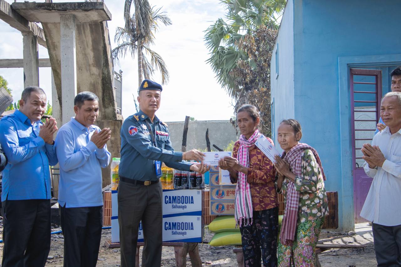 អាវុធហត្ថខេត្តកំពង់ស្ពឺ ផ្ដល់គ្រឿងឧបភោគបរិភោគ និងថវិការជូនរងគ្រោះ២គ្រួសារដោយសារភ្លើងឆេះផ្ទះក្នុងស្រុកគងពិសី