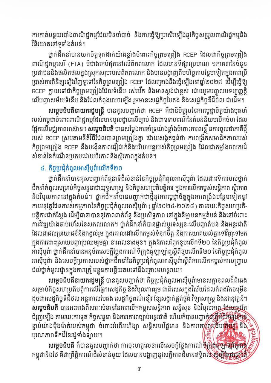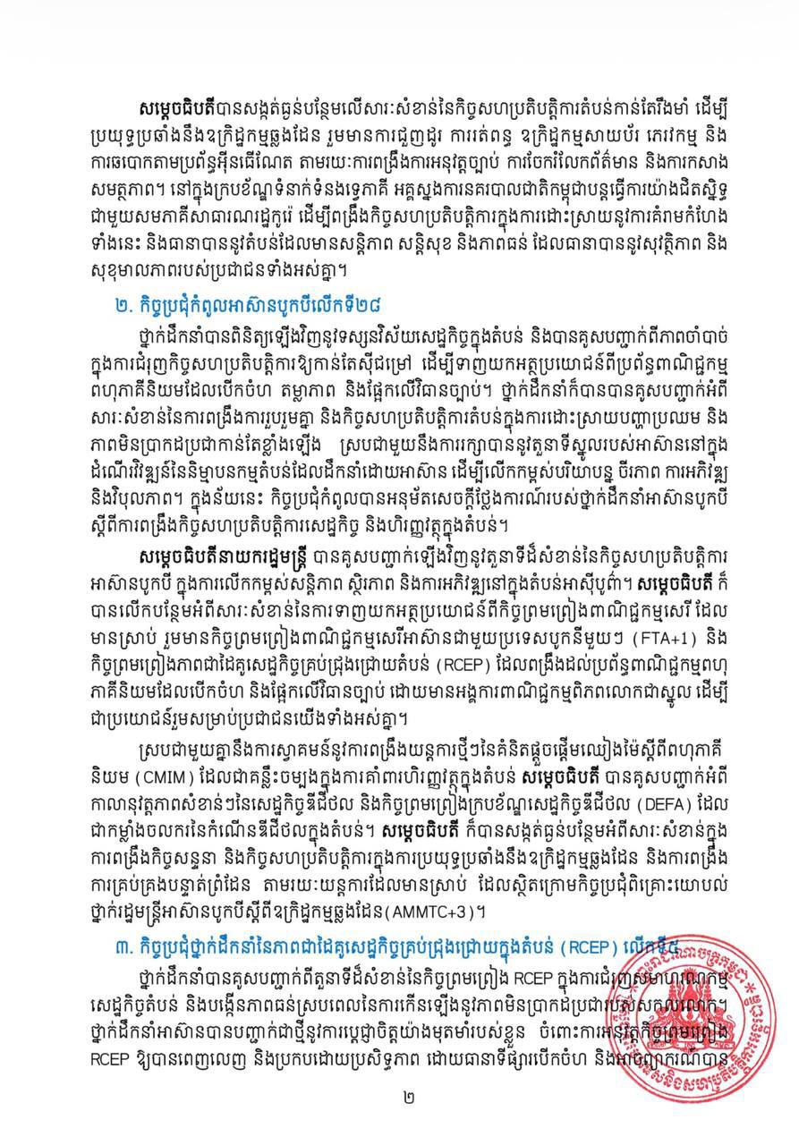 លទ្ធផលនៃកិច្ចប្រជុំកំពូលអាស៊ាន-សាធារណរដ្ឋកូរ៉េលើកទី២៦, កិច្ចប្រជុំកំពូលអាស៊ានបូកបីលើកទី២៨, កិច្ចប្រជុំថ្នាក់ដឹកនាំនៃភាពជាដៃគូសេដ្ឋកិច្ចគ្រប់ជ្រុងជ្រោយក្នុងតំបន់លើកទី៥, កិច្ចប្រជុំកំពូលអាស៊ីបូព៌ាលើកទី២០ និងកិច្ចប្រជុំកំពូលអាស៊ាន-អង្គការសហប្រជាជាតិលើកទី១៥