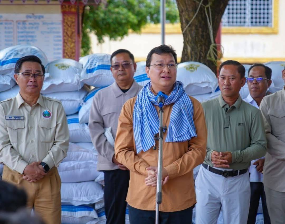 លោក ឌិត ទីណា រដ្ឋមន្រ្ដីក្រសួងកសិកម្ម រុក្ខាប្រមាញ់ និងនេសាទ នៅថ្ងៃសៅរ៍ ទី០៨ ខែវិច្ឆិកា ឆ្នាំ២០២៥ បាននាំយកស្រូវពូជចំនួន ២៩,៩ តោន ក្រោមកម្មវិធីប្រព័ន្ធស្បៀងបម្រុងរបស់រាជរដ្ឋាភិបាល ដើម្បីចែកជូនពុកម៉ែបងប្អូនប្រជាកសិករចំនួន ២៩៩ គ្រួសារ ដែលរងផលប៉ះពាល់ពីទឹកជំនន់ជន់លិចដំណាំស្រូវនៅស្រុកទ្រាំង ខេត្តតាកែវ។