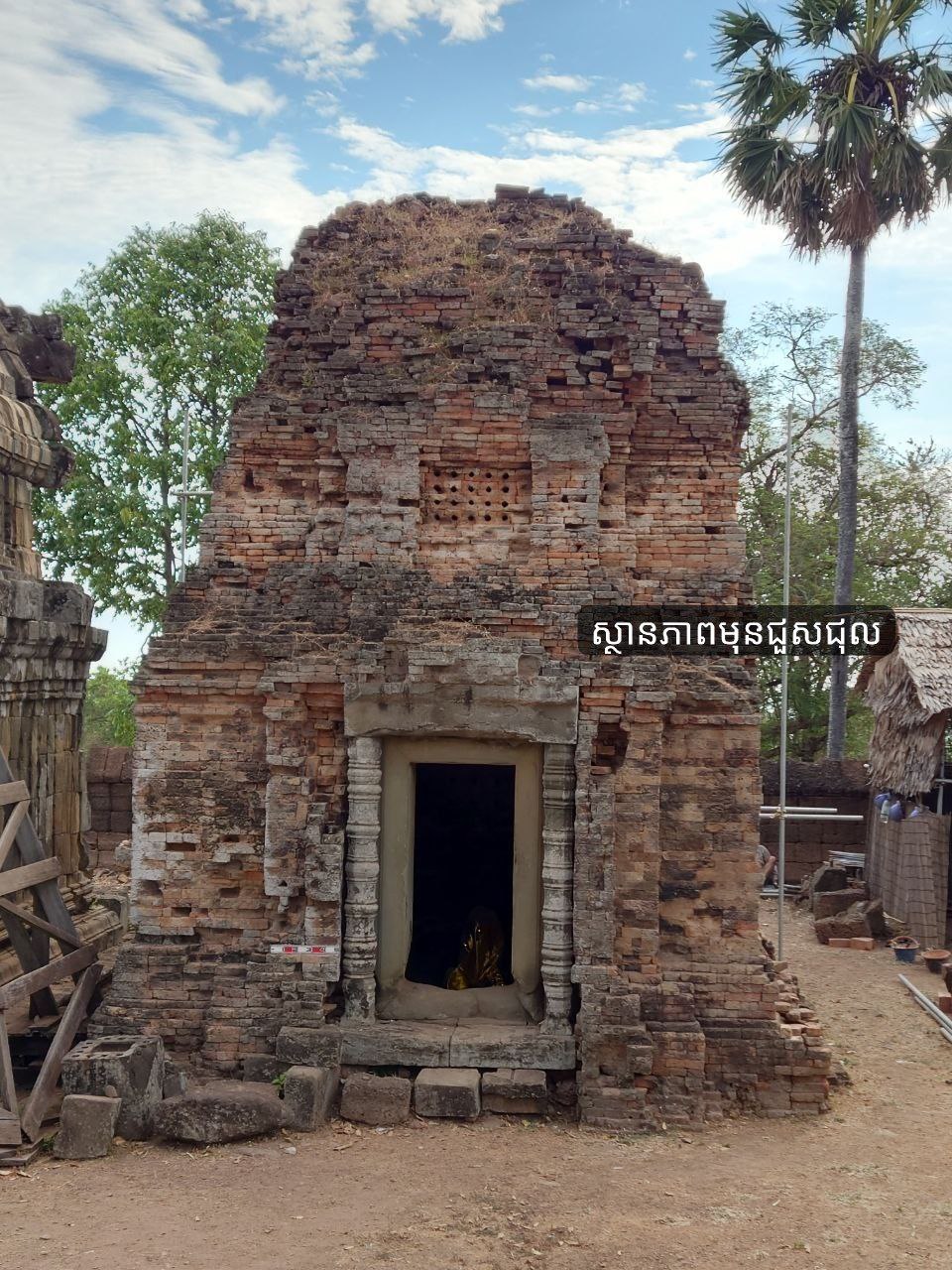 មួយទៀត គឺតួខឿនប្រាសាទ មានការទ្រុឌទ្រោមខ្លាំងផងដែរ ដែលទាមទារឱ្យមានការជួសជុលជាបន្ទាន់។ ចំពោះបច្ចេកទេសជួសជុលប្រាសាទនេះ ក្រុមការងារបានសម្អាតកម្ទេចដី ឬសស្មៅ ដើមរុក្ខជាតិ និងព្យាយាមរកឥដ្ឋចាស់ៗដែលជ្រុះរាយប៉ាយនៅខាងក្រោម ឬនៅជុំវិញ ដោយពង្រឹងខឿន ដំបូល និងតួប្រាសាទឱ្យមានភាពរឹងមាំឡើងវិញ។