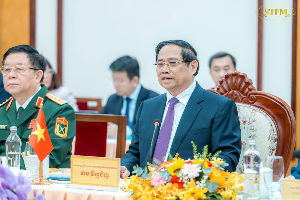 ជាការឆ្លើយតប, សម្ដេចបវរធិបតី បានថ្លែងអំណរគុណចំពោះ លោកនាយករដ្ឋមន្រ្តីវៀតណាម សម្រាប់ការស្វាគមន៍យ៉ាងកក់ក្តៅ និងបានវាយតម្លៃខ្ពស់ចំពោះលទ្ធផលប្រកបដោយផ្លែផ្កានៃកិច្ចប្រជុំស្តីពីកិច្ចសហប្រតិបត្តិការ និងការអភិវឌ្ឍបណ្តាខេត្តជាប់ព្រំដែនកម្ពុជា-វៀតណាម។ សម្ដេចបវរធិបតី បានលើកទឹកចិត្តឱ្យបណ្ដាខេត្តជាប់ព្រំដែននៃប្រទេសទាំងពីរ បន្តរួមគ្នាកសាងតំបន់ព្រំដែនជាតំបន់សន្តិភាព មិត្តភាព ស្ថិរភាព សហប្រតិបត្តិការ និងការអភិវឌ្ឍ ដើម្បីផលប្រយោជន៍រួម ស្របតាមស្មារតី «ភាពជាអ្នកជិតខាងល្អ មិត្តភាពជាប្រពៃណី កិច្ចសហប្រតិបត្តិការគ្រប់ជ្រុងជ្រោយ និងស្ថិរភាពយូរអង្វែង»។