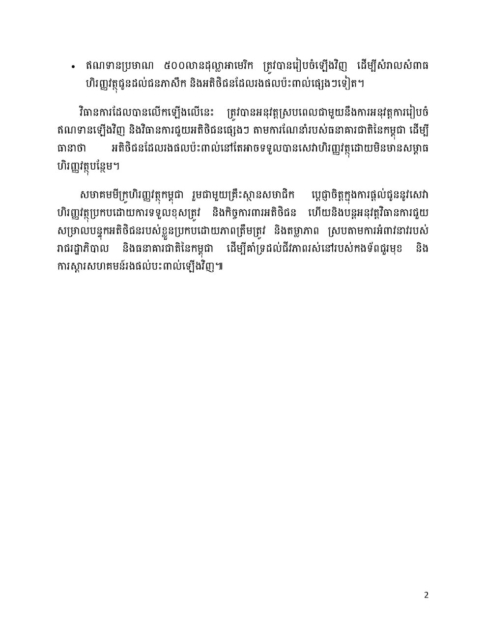 ភ្នំពេញៈ យោងតាមសេចក្តីប្រកាសព័ត៌មានរបស់ សមាគមមីក្រូហិរញ្ញវត្ថុកម្ពុជា (CMA) នាថ្ងៃទី១៦ ខែមករា ឆ្នាំ២០២៦នេះ បង្ហាញលទ្ធផលសំខាន់ៗនៃកិច្ចសហប្រតិបត្តិការក្នុងវិស័យមីក្រូហិរញ្ញវត្ថុ ដើម្បីគាំទ្រដល់កងទ័ព និងប្រជាពលរដ្ឋដែលរងផលប៉ះពាល់ដោយសារជម្លោះព្រំដែននាពេលថ្មីៗនេះ ដែលឆ្លើយតបទៅនឹងការអំពាវនាវរបស់ សម្តេចមហាបវរធិបតី ហ៊ុន ម៉ាណែត នាយករដ្ឋមន្រ្តីនៃព្រះរាជាណាចក្រកម្ពុជា និងតាមសេចក្តីណែនាំរបស់ធនាគារជាតិនៃកម្ពុជា (NBC)។
