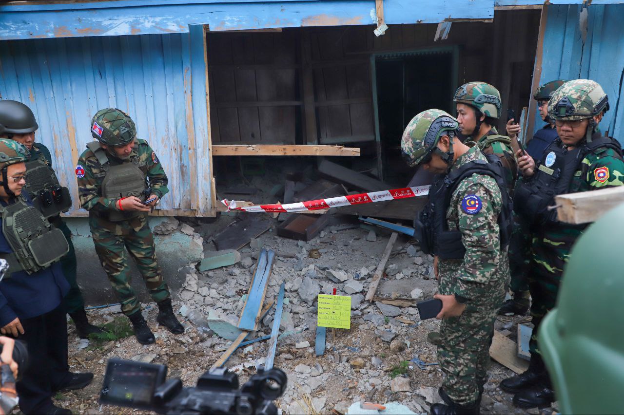 បាត់ដំបងៈ លោកស្រីឧត្តមសេនីយ៍ឯក ម៉ាលី សុជាតា អ្នកនាំពាក្យក្រសួងការពារជាតិ នៃព្រះរាជាណាចក្រកម្ពុជាបានឱ្យដឹងថា នៅវេលាម៉ោង ៨:២៥នាទីព្រឹក ថ្ងៃពុធ ទី២១ ខែមករា ឆ្នាំ២០២៦នេះ ក្រុមសម្របសម្រួល (CLG) នៃព្រះរាជាណាចក្រកម្ពុជា បានសម្របសម្រួលជូនដល់ក្រុមអ្នកសង្កេតការណ៍អាស៊ាន (AOT) ចុះសង្កេតការណ៍ ផ្ទៀងផ្ទាត់ និងរាយការណ៍អំពីស្ថានភាពព្រំដែននៅភូមិសាស្រ្តស្រុកសំពៅលូន និងស្រុកភ្នំព្រឹក ក្នុងខេត្តបាត់ដំបងក្រោយបទឈប់បាញ់ចូលជាធរមាន និងចុះទៅពិនិត្យមើលទីតាំងស៊ីវិល និងហេដ្ឋារចនាសម្ព័ន្ធស៊ីវិល ក្នុងនោះរួមមានលំនៅដ្ឋានរបស់ប្រជាពលរដ្ឋ និងមន្ទីរពេទ្យបង្អែក ដែលត្រូវរងការខូចខាតយ៉ាងធ្ងន់ធ្ងរ ដោយសារការវាយប្រហាររបស់យោធាថៃកាលពីខែធ្នូឆ្នាំ២០២៥។