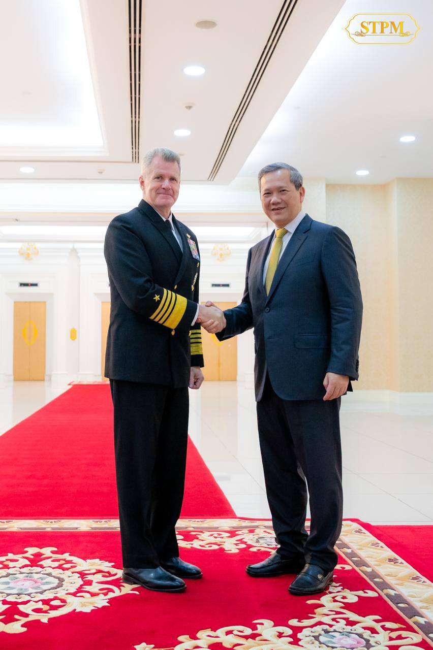 ក្នុងឱកាសដែលសម្តេចមហាបវរធិបតី ហ៊ុន ម៉ាណែត នាយករដ្ឋមន្ត្រីនៃព្រះរាជាណាចក្រកម្ពុជា បានអនុញ្ញាតឱ្យចូលជួបសម្តែងការគួរសម និងពិភាក្សាការងារ នៅវិមានសន្តិភាព នាព្រឹកថ្ងៃទី២៦ ខែមករា ឆ្នាំ២០២៦ លោក នាយឧត្តមនាវី Samuel Paparo មេបញ្ជាការនៃបញ្ជាការដ្ឋានឥណ្ឌូ-ប៉ាស៊ីហ្វិក នៃសហរដ្ឋអាម៉េរិក បានជម្រាបជូនសម្ដេចបវរធិបតីថា លោកប្រធានាធិបតី ដូណាល់ ត្រាំ នៅតែបន្តយកចិត្តទុកដាក់ចំពោះស្ថានការណ៍ព្រំដែនកម្ពុជា-ថៃ និងការអនុវត្តតាមស្មារតីនៃសេចក្ដីថ្លែងការណ៍រួមទីក្រុងគូឡាឡាំពួ។