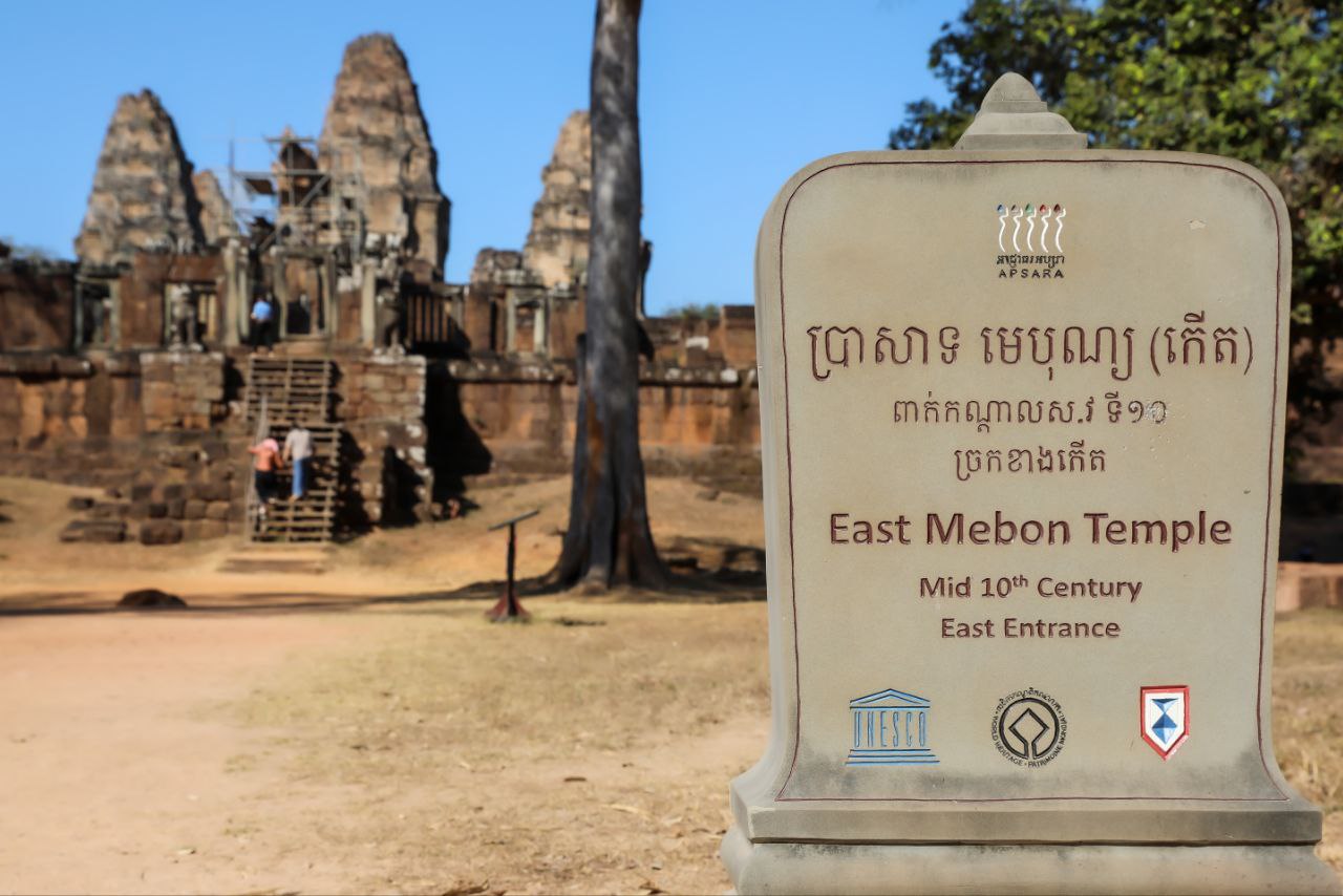 សូមជម្រាបជូនថា ប្រាសាទមេបុណ្យខាងកើត ជាប្រាសាទភ្នំមួយ ស្ថិតនៅចំកណ្តាលបារាយណ៍យសោធរតដាក (បារាយណ៍ខាងកើត)។ ប្រាសាទនេះ មានអាយុកាលចាស់ជាងប្រាសាទប្រែរូប កសាងឡើងក្នុងរជ្ជកាល ព្រះបាទរាជេន្រ្ទវម៌្មទី២ នាសតវត្សទី១០ ដើម្បីឧទ្ទិសថ្វាយបុព្វការីជន៕