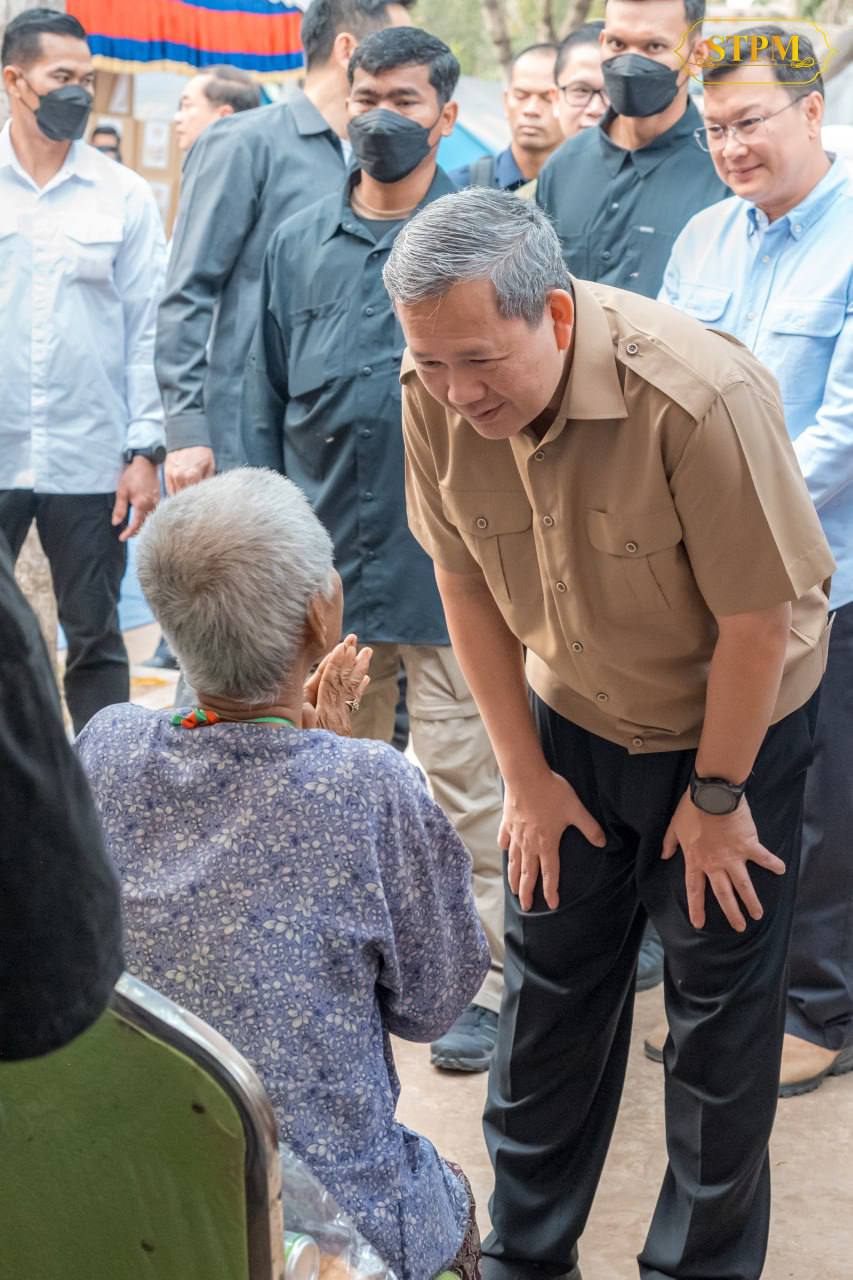 ក្នុងឱកាសអញ្ជើញជួបសំណេះសំណាលសាកសួរសុខទុក្ខប្រជាពលរដ្ឋភៀសសឹកចំនួន ១.២៤៨គ្រួសារ មកពីភូមិព្រៃចាន់ និងភូមិជោគជ័យ ដែលកំពុងស្នាក់នៅមណ្ឌលសុវត្ថិភាពក្នុងបរិវេណវត្តចាន់ស៊ីសាមគ្គីរតនារាម ស្ថិតនៅស្រុកអូរជ្រៅ ខេត្តបន្ទាយមានជ័យ នៅខេត្តបន្ទាយមានជ័យ នាព្រឹកថ្ងៃសៅរ៍ ទី១៤ កុម្ភៈ ២០២៦ សម្ដេចធិបតី ហ៊ុន ម៉ាណែត នាយករដ្ឋមន្រ្ដីកម្ពុជា មានប្រសាសន៍ថា រាជរដ្ឋាភិបាលបាននឹងកំពុងខិតខំគ្រប់មធ្យោបាយដេីម្បីបញ្ជៀសការផ្ទុះសង្គ្រាមឡេីងវិញ និងខិតខំរៀបចំការស្នាក់នៅបណ្តោះអាសន្នដល់បងប្អូន អ៊ំពូមីង តាយាយដែលត្រូវចាកឆ្ងាយពីលំនៅដ្ឋាន, មិនទាន់អាចត្រឡប់ទៅវិញក្នុងពេលនេះ ដេីម្បីជួយសម្រួលដល់ការរស់នៅប្រចាំថ្ងៃឱ្យកាន់តែល្អប្រសេីរទាំងសុវត្ថិភាព និងបរិស្ថានស្អាត។