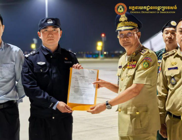 ភ្នំពេញៈ នៅថ្ងៃទី១៣ ខែកុម្ភៈ ឆ្នាំ២០២៦ នាយកដ្ឋានស៊ើបអង្កេត និងអនុវត្តនីតិវិធី នៃអគ្គនាយកអន្តោប្រវេសន៍ សហាការជាមួយស្ថានទូតចិន បន្តធ្វើការបណ្តេញជនជាតិចិនសរុបចំនួន ៧១នាក់ (ស្រី០នាក់) ពាក់ព័ន្ធករណីឆបោកតាមប្រព័ន្ធអនឡាញ (Online Scams) ត្រូវបានបណ្ដេញចេញតាមរយៈយន្តហោះពិសេស នៅប៉ុស្តិ៍នគរបាលច្រកទ្វារអាកាសអន្តរជាតិតេជោ។