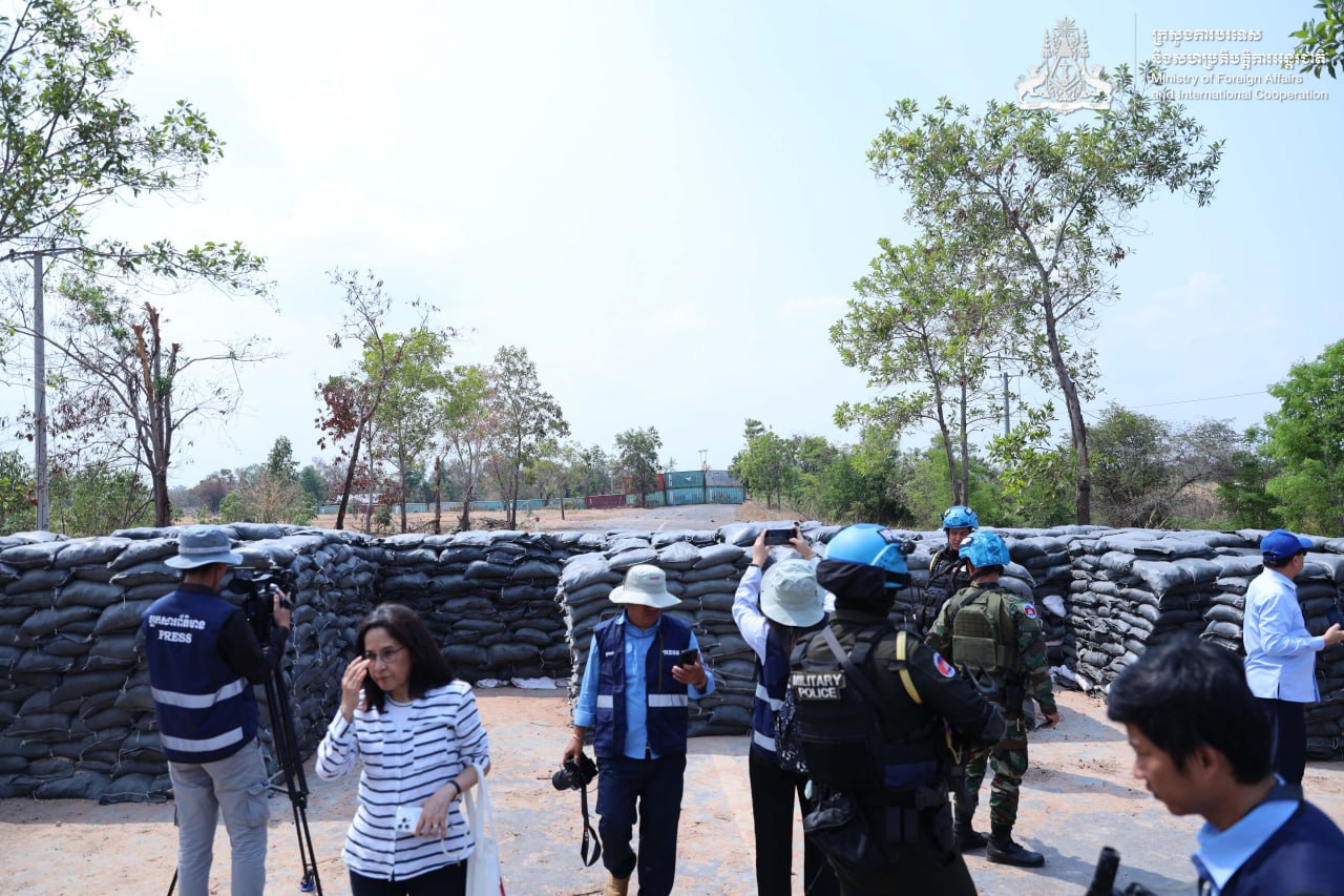 ភ្នំពេញៈ នៅថ្ងៃទី២៣ ខែកុម្ភៈ ឆ្នាំ២០២៦ លោកស្រី អ៊ាត សោភា រដ្ឋមន្ត្រីស្តីទីនៃក្រសួងការបរទេស និង សហប្រតិបត្តិការអន្តរជាតិ បានដឹកនាំសមាជិកអង្គទូតបរទេស និងទីភ្នាក់ងារអង្គការសហប្រជាជាតិប្រចាំកម្ពុជា ទៅកាន់ទីតាំងចំនួន៣ ស្ថិតក្នុងខេត្តបន្ទាយមានជ័យ រួមមាន ភូមិជោគជ័យ ភូមិព្រៃចាន់ និងតំបន់បឹងត្រកួន។ ទីតាំងទាំងនេះត្រូវបានគ្រប់គ្រងដោយកងទ័ពថៃ ក្នុងអំឡុងពេលនៃការវាយប្រហារឈ្លានពាន កាលពីខែធ្នូ ឆ្នាំមុន។