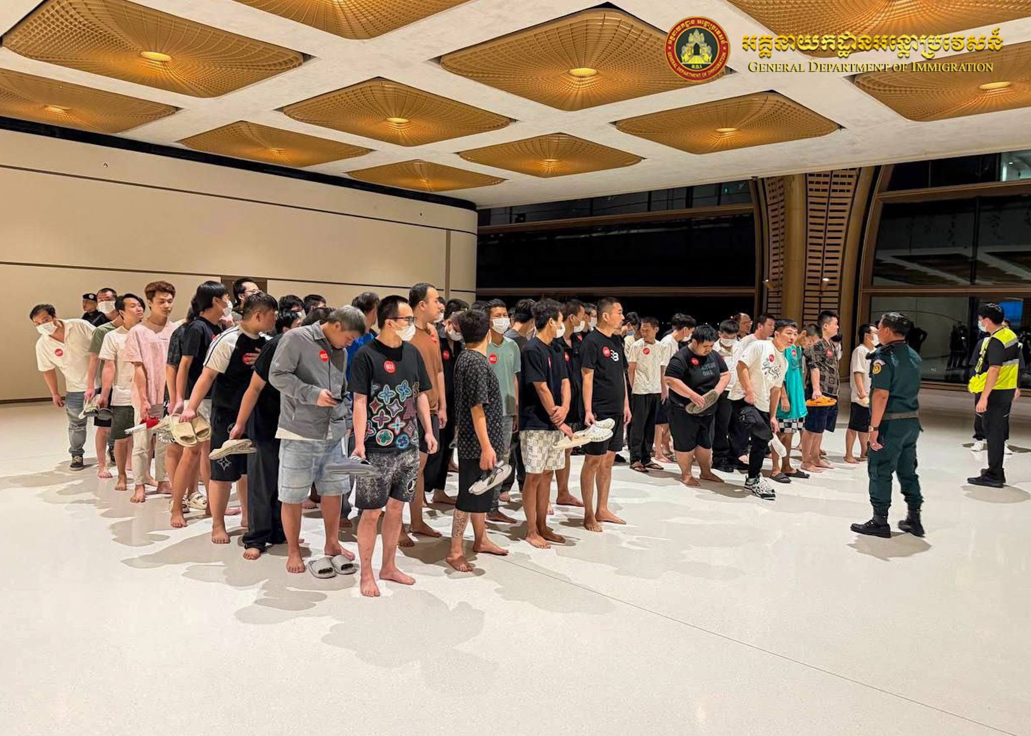 ភ្នំពេញៈ នៅថ្ងៃទី១៤ ខែមីនា ឆ្នាំ២០២៦ នាយកដ្ឋានស៊ើបអង្កេត និងអនុវត្តនីតិវិធី នៃអគ្គនាយកអន្តោប្រវេសន៍ សហការជាមួយស្ថានទូតចិនប្រចាំនៅព្រះរាជាណាចក្រកម្ពុជា បន្តធ្វើការបណ្តេញជនជាតិចិនសរុបចំនួន ៣៣៥នាក់ (ស្រី៤នាក់) ពាក់ព័ន្ធករណីឆបោកតាមប្រព័ន្ធអនឡាញ (Online Scams) និងករណីលួចស្នាក់នៅ ធ្វើការងារខុសច្បាប់ ត្រូវបានបណ្ដេញចេញតាមរយៈយន្តហោះពិសេស នៅប៉ុស្តិ៍នគរបាលច្រកទ្វារអាកាសអន្តរជាតិតេជោ។