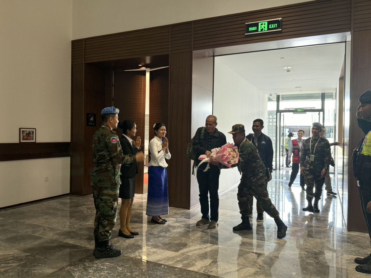 ភ្នំពេញ៖ លោកស្រី ឧត្តមសេនីយ៍ឯក ម៉ាលី សុជាតា អ្នកនាំពាក្យក្រសួងការពារជាតិ នៃព្រះរាជាណាចក្រកម្ពុជា បានឱ្យដឹងថា នារសៀលថ្ងៃទី២៧ ខែមីនា ឆ្នាំ២០២៦ នៅអាកាសយានដ្ឋានអន្តរជាតិសៀមរាបអង្គរ ខេត្តសៀមរាប ក្រុមអ្នកសម្របសម្រួល (CLG) នៃព្រះរាជាណាចក្រកម្ពុជា បានសូមស្វាគមន៍យ៉ាងកក់ក្តៅបំផុតចំពោះប្រទេសម៉ាឡេស៊ី ដែលបានចាត់បញ្ជូននាយទាហានបន្តវេនចំនួនពីរ (២) រូប (វរសេនីយ៍ទោ MOHD AMIN BIN BAHAROM និងវរសេនីយ៍ទោ MOHD ERRY BIN DUL TLDM) ចូលរួមជាមួយក្រុមអ្នកសង្កេតការណ៍អាស៊ាន (AOT) ប្រចាំព្រះរាជាណាចក្រកម្ពុជា ដែលដឹកនាំដោយប្រទេសហ្វីលីពីន ក្នុងនាមជាប្រធានអាស៊ាន ដើម្បីចុះសង្កេតការណ៍ ផ្ទៀងផ្ទាត់ និងធានាការអនុវត្តប្រកបដោយប្រសិទ្ធភាពលើវិធានការទាំងអស់ក្នុងសេចក្តីប្រកាសរួម។