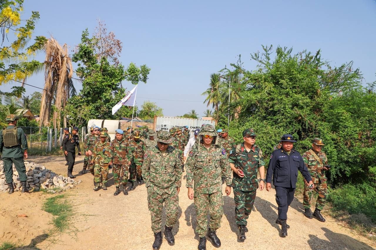 ភ្នំពេញៈ លោកស្រីឧត្តមសេនីយ៍ឯក ម៉ាលី សុជាតា អ្នកនាំពាក្យក្រសួងការពារជាតិ នៃព្រះរាជាណាចក្រកម្ពុជា បានឱ្យដឹងថា នៅថ្ងៃសៅរ៍ ទី២៨ ខែមីនា ឆ្នាំ២០២៦ វេលាម៉ោង ៨:២៥នាទីព្រឹក ក្រុមសម្របសម្រួល (CLG) នៃព្រះរាជាណាចក្រកម្ពុជា បានសម្របសម្រួលដល់ក្រុមអ្នកសង្កេតការណ៍អាស៊ាន (AOT) ចុះសង្កេតការណ៍ ផ្ទៀងផ្ទាត់ និងរាយការណ៍អំពីស្ថានភាពព្រំដែននៅតំបន់ភូមិព្រៃចាន់ ខេត្តបន្ទាយមានជ័យ លើការគោរព និងអនុវត្តវិធានការទាំងអស់ក្នុងសេចក្តីប្រកាសរួម ក្រោយបទឈប់បាញ់ចូលជាធរមាន។