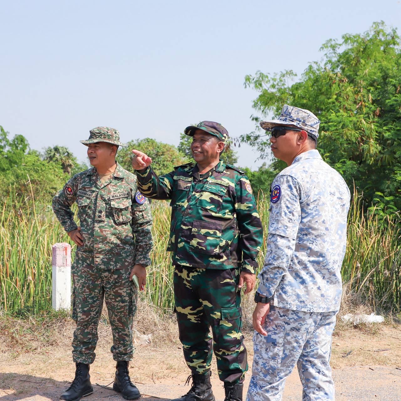 បន្ទាយមានជ័យៈ លោកស្រីឧត្តមសេនីយ៍ឯក ម៉ាលី សុជាតា អ្នកនាំពាក្យក្រសួងការពារជាតិ នៃព្រះរាជាណាចក្រកម្ពុជា បានឱ្យដឹងថា នៅថ្ងៃសៅរ៍ ទី២៨ ខែមីនា ឆ្នាំ២០២៦ វេលាម៉ោង ៩:៣៥នាទីព្រឹក ក្រុមសម្របសម្រួល (CLG) នៃព្រះរាជាណាចក្រកម្ពុជា បានសម្របសម្រួលដល់ក្រុមអ្នកសង្កេតការណ៍អាស៊ាន (AOT) ចុះសង្កេតការណ៍ ផ្ទៀងផ្ទាត់ និងរាយការណ៍អំពីស្ថានភាពព្រំដែននៅតំបន់ច្រកបឹងត្រកួន ខេត្តបន្ទាយមានជ័យលើការគោរព និងអនុវត្តវិធានការទាំងអស់ក្នុងសេចក្តីប្រកាសរួម ក្រោយបទឈប់បាញ់ចូលជាធរមាន។