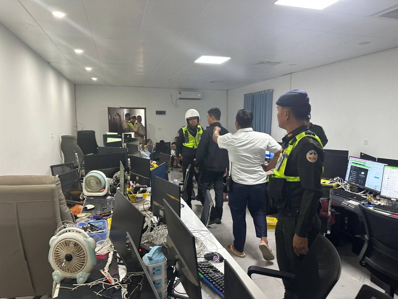 ក្រៅពីឃាត់ខ្លួនជនសង្ស័យខាងលើ សមត្ថកិច្ច ក៏បានដកហូតសម្ភារៈវត្ថុតាងមានដូចជាៈ ទូរសព្ទដៃ ចំនួន ៨៤៦គ្រឿង, ធុង CPU ចំនួន ៥១គ្រឿង,អេក្រង់ MONITOR ចំនួន ៥៤គ្រឿង,ស៊ីមកាតអន្តរជាតិមួយចំនួន។ ចំណែកឯ សម្ភារៈវត្ថុតាង ក្នុងឃ្លាំងរក្សាទុក មានកុំព្យូទ័រលើតុ ALL IN ONEចំនួន ៣១គ្រឿង, ធុង CPU ចំនួន ០២គ្រឿងនិង អេក្រង់ MONITOR ចំនួន ១៨គ្រឿង។ ប្រតិបត្តិការបង្ក្រាបនេះខាងលើនេះធ្វើឡើង ក្រោមការបញ្ជាពី លោក ឃួង ស្រេង អភិបាលរាជធានីភ្នំពេញ និង ឧត្តមសេនីយ៍ឯក ជួន ណារិន្ទ អគ្គស្នងការរង និងជាស្នងការនគរបាលរាជធានីភ្នំពេញ រួមទាំងមានការចូលរួមសហការពីអាជ្ញាធរខណ្ឌសែនសុខ និងដោយមានការសម្របសម្រួលពីតំណាងអយ្យការអមសាលាដំបូងរាជធានីភ្នំពេញ។