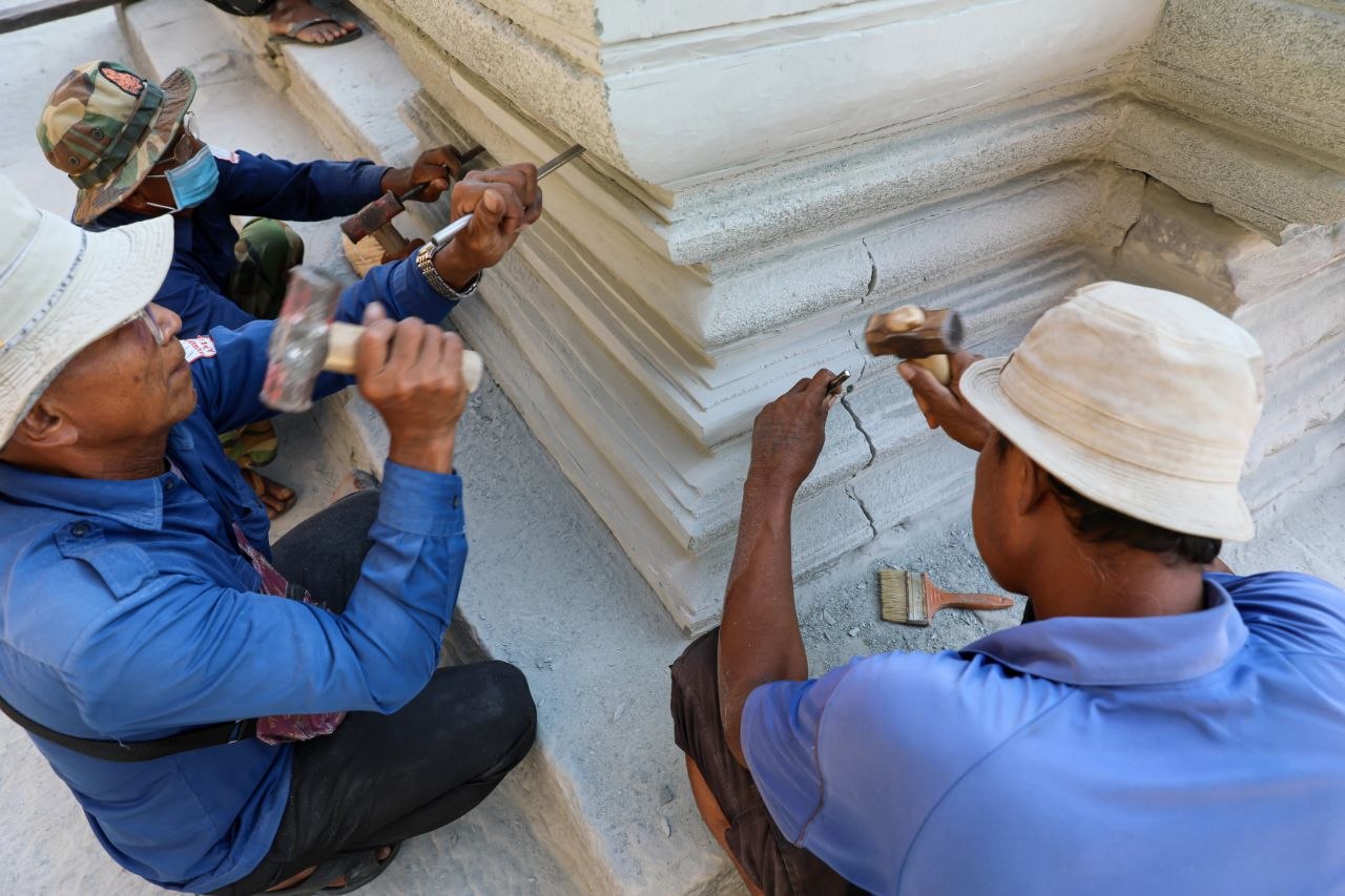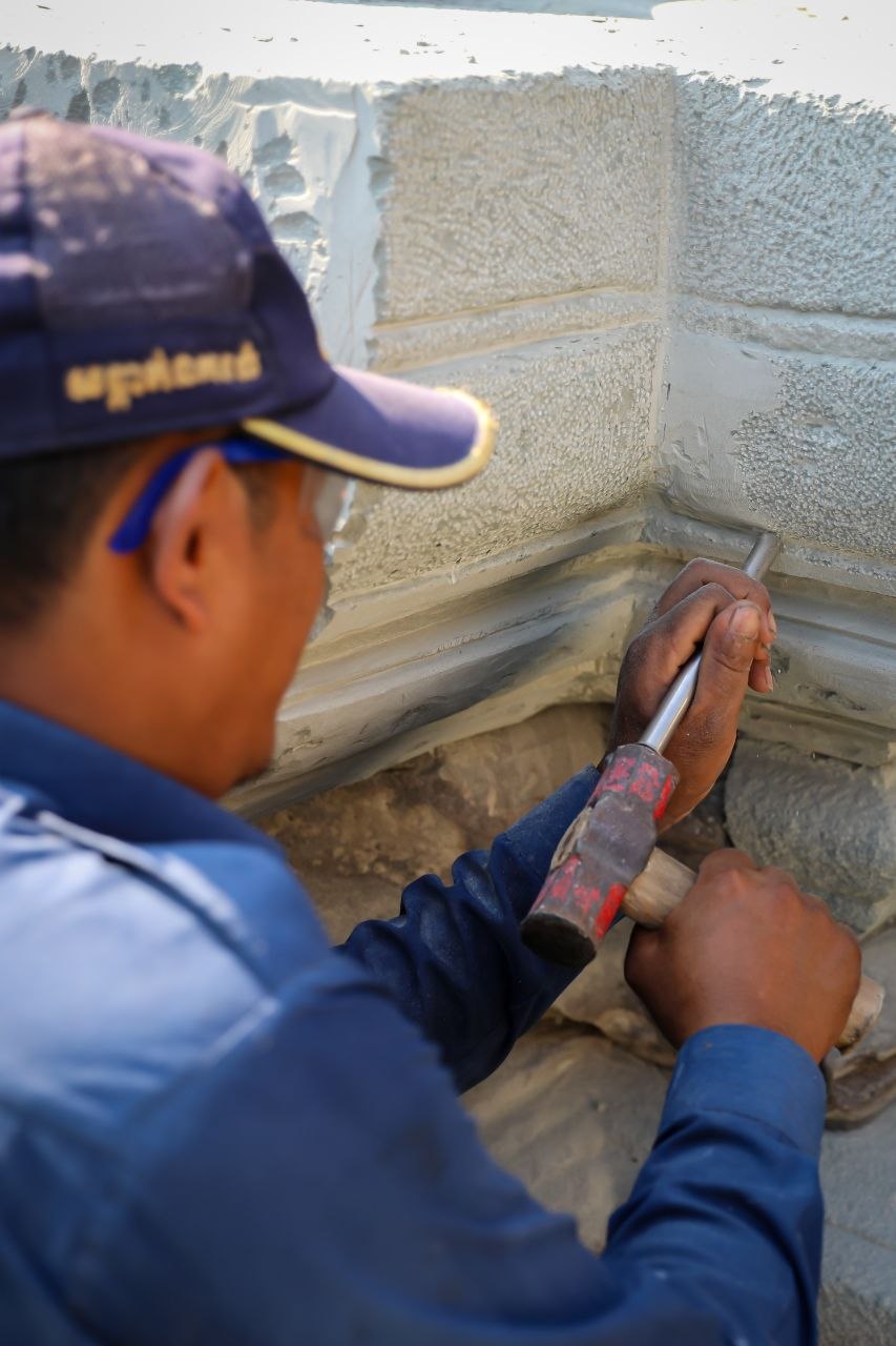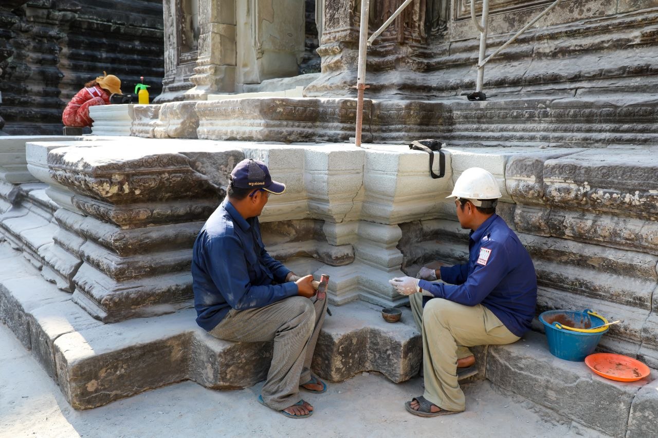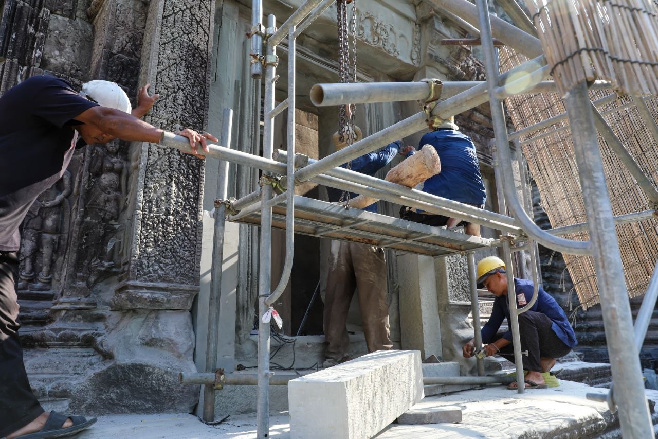 តាមការគូសបញ្ជាក់ពីលោក ម៉ៅ សុខនី គម្រោងជួសជុលនេះ ចែកជា២ផ្នែក គឺទី១ ការងារពង្រឹងសាច់ថ្ម និងទី២ ការងារជួសជុលពង្រឹងហេដ្ឋារចនាសម្ព័ន្ធតួបណ្ណាល័យ។ យ៉ាងណា សព្វថ្ងៃនេះក្រុមការងារកំពុងអនុវត្តគម្រោងសាកល្បង ដោយដាក់សសរពេជ្រចំនួន២ ដើម្បីទ្រទម្ងន់ផ្តែរ ក្នុងទិសដៅជួយរចនាសម្ព័ន្ធបណ្ណាល័យឱ្យកាន់តែរឹងមាំ។